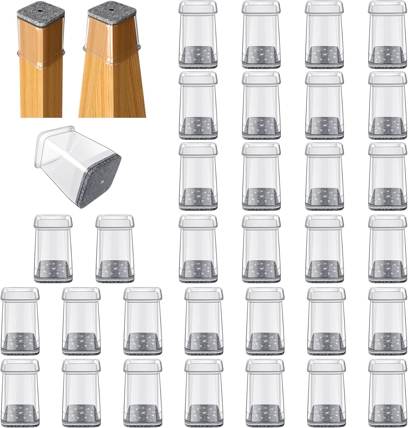 32 Pcs Square Chair Leg Floor Protectors - Silicone & Felt Furniture Pads for Hardwood Floors, Scratch-Resistant Noise-Reducing Chair Leg Caps, Fits Square Legs (1/2'' to 3/4'')