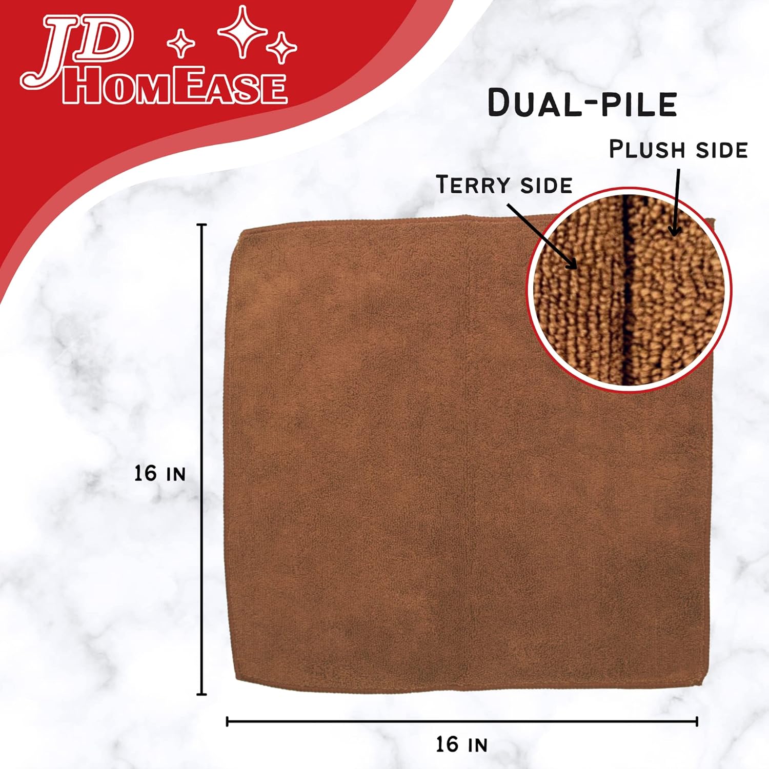 Microfiber Cleaning Cloths,120 Pack, 16"x16", All-Purpose, Softer, Highly Absorbent, Lint-Free, Reusable, Washable Pro Towels, Brown, for House, Kitchen, Bathroom, Car, Office