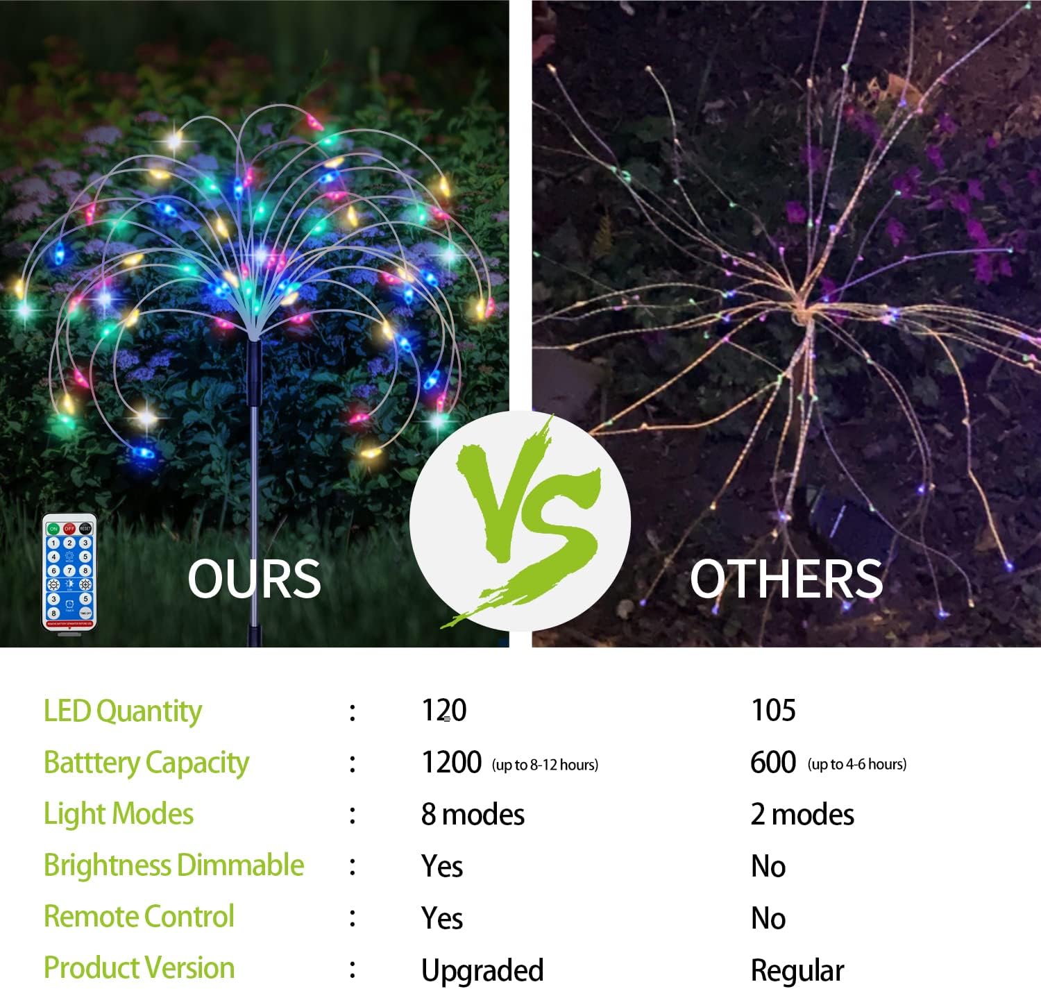• ♥3 Brightness & 8 Lighting Modes: Just need to charge for 4-6 hours , provide 12-16 hours of continuous lighting, solar garden light must be installed in a south-facing sunny place. The solar garden firework lights are equipped with a remote control, you can use the remote control to adjust 3 levels of brightness and 8 flashing modes. The outdoor decorative light has a memory function. and will return to the last set mode the next time it is turned on.