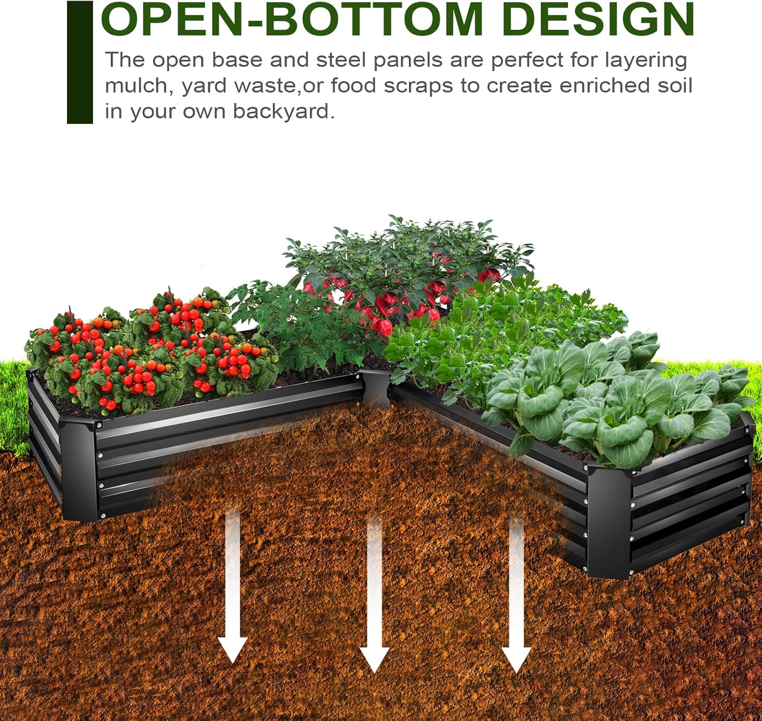 • Bottomless Design: Our metal raised garden bed is bottomless, promoting optimal drainage and healthy root growth. It's easy to install on any surface, perfect for a variety of outdoor garden settings.