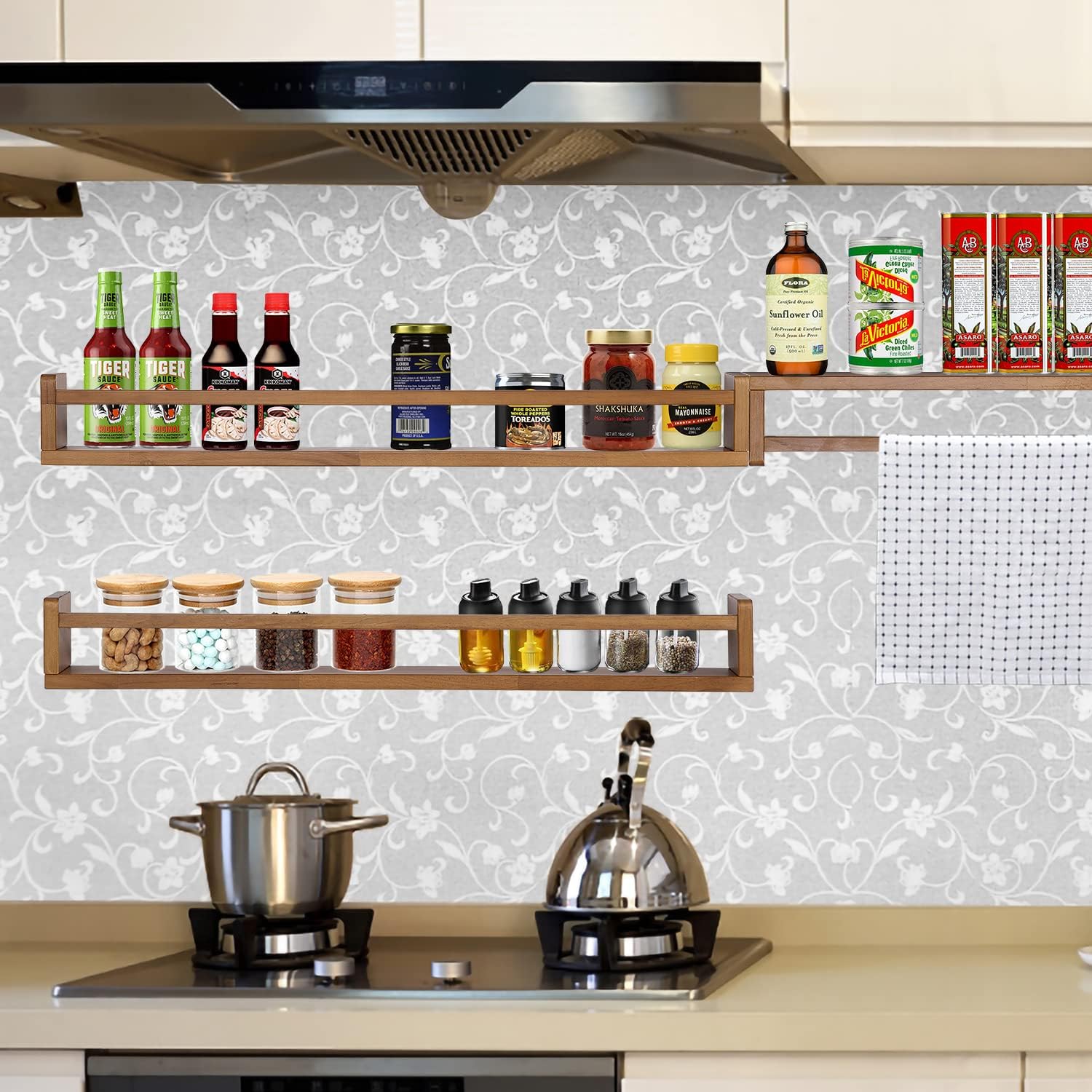 • Space-Saving Wall Shelves: Floating shelves are practical and fixed to the wall will take up less floor space while increasing storage space. You can put it in your child's bedroom as a space-saving bookshelf, or use it as a spice rack or condiment rack in the kitchen. You can also put it in the bathroom to store toiletries.