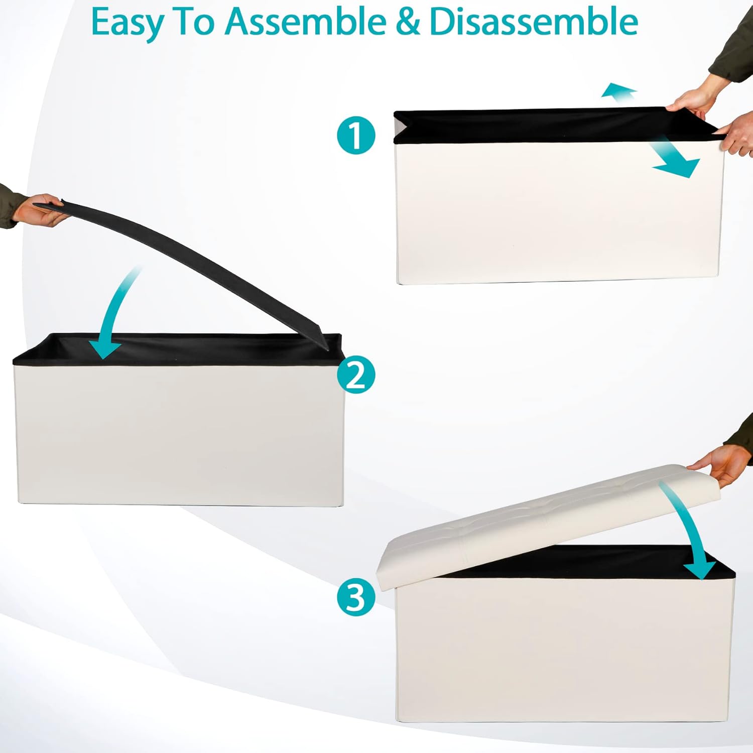 SUPER DEAL Folding Storage Ottoman Bench, Waterproof Faux Leather Ottoman Padded Seat Footrest Bench for Living Room, Bedroom, Entryway, Small Spaces, 15 x 30 x 15 inches, Creamy White