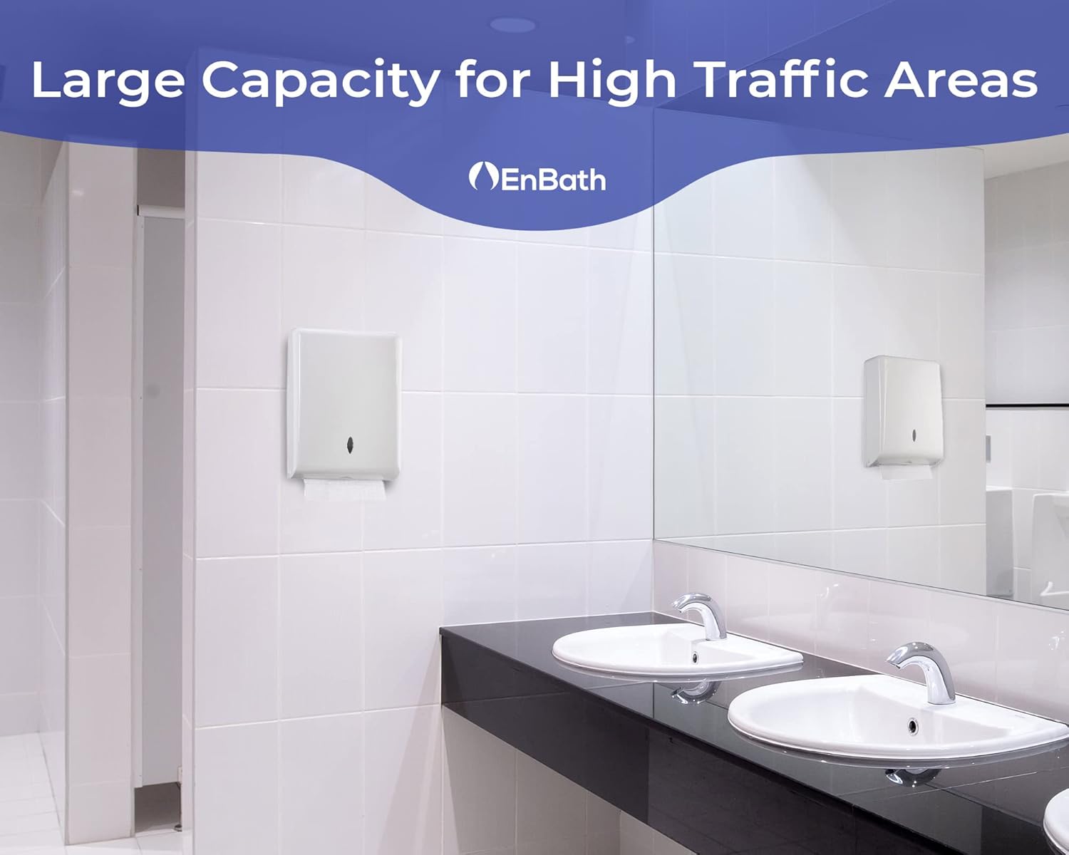 Commercial Paper Towel Dispenser Wall Mount, Holds 500 Multifold, Trifold, Z Fold, C Fold Hand Towels for Bathroom/Restroom, Office, Shop, or Home (White)