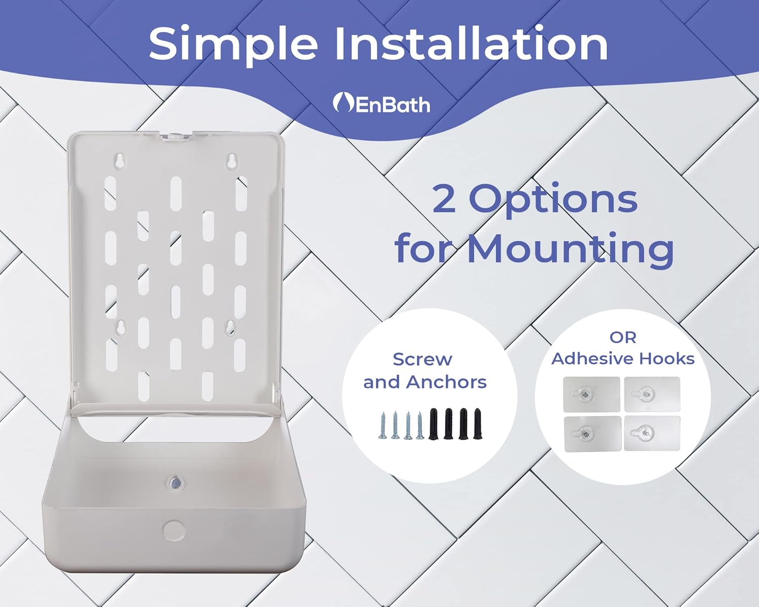 • Simple Installation - Easily install these wall mounted paper towel dispensers using the provided screws and anchors, Or, Avoid putting holes in the wall and mount using Adhesive Hooks (Also Included)
