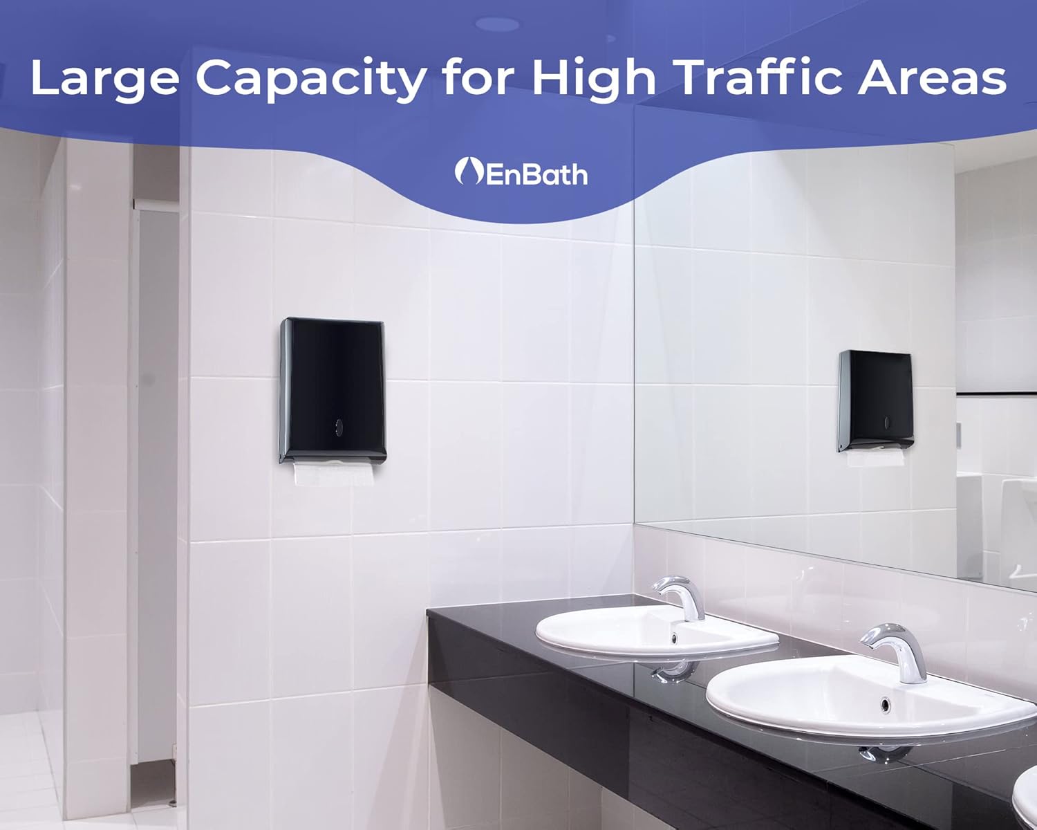 Commercial Paper Towel Dispenser Wall Mount, Holds 500 Multifold, Trifold, Z Fold, C Fold Hand Towels for Bathroom/Restroom, Office, Shop, or Home (Black)