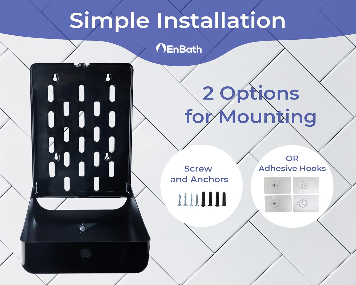 • Simple Installation - Easily install these wall mounted paper towel dispensers using the provided screws and anchors, Or, Avoid putting holes in the wall and mount using Adhesive Hooks (Also Included)