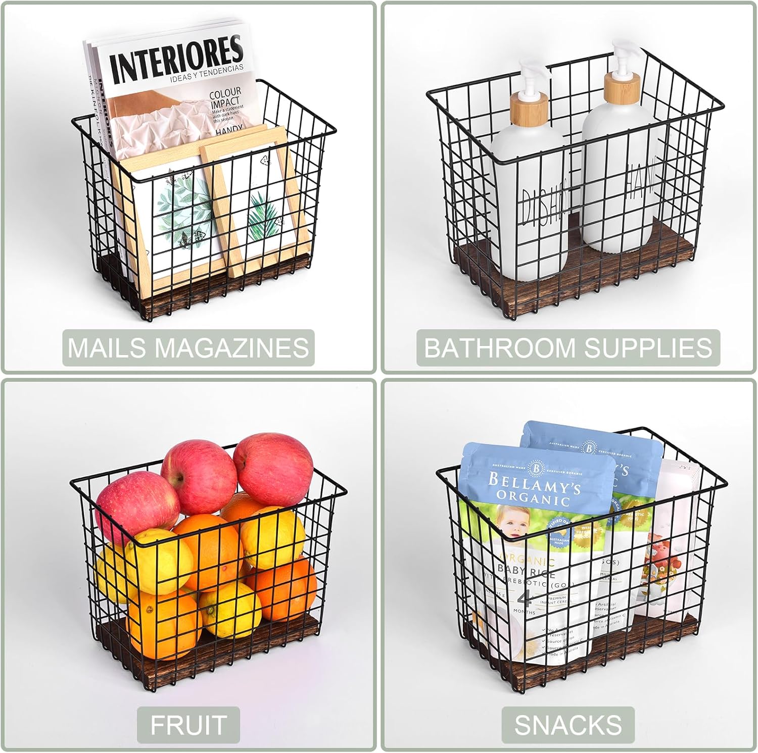 • Versatile for Everywhere - These big metal baskets help build additional storage capacity on the walls and organize items that might otherwise clutter up countertops or drawers. Use them for kitchen cooking utensils, vanity hair heating tools, entryway outdoor gear, home office documents and mail, garage tools, etc.