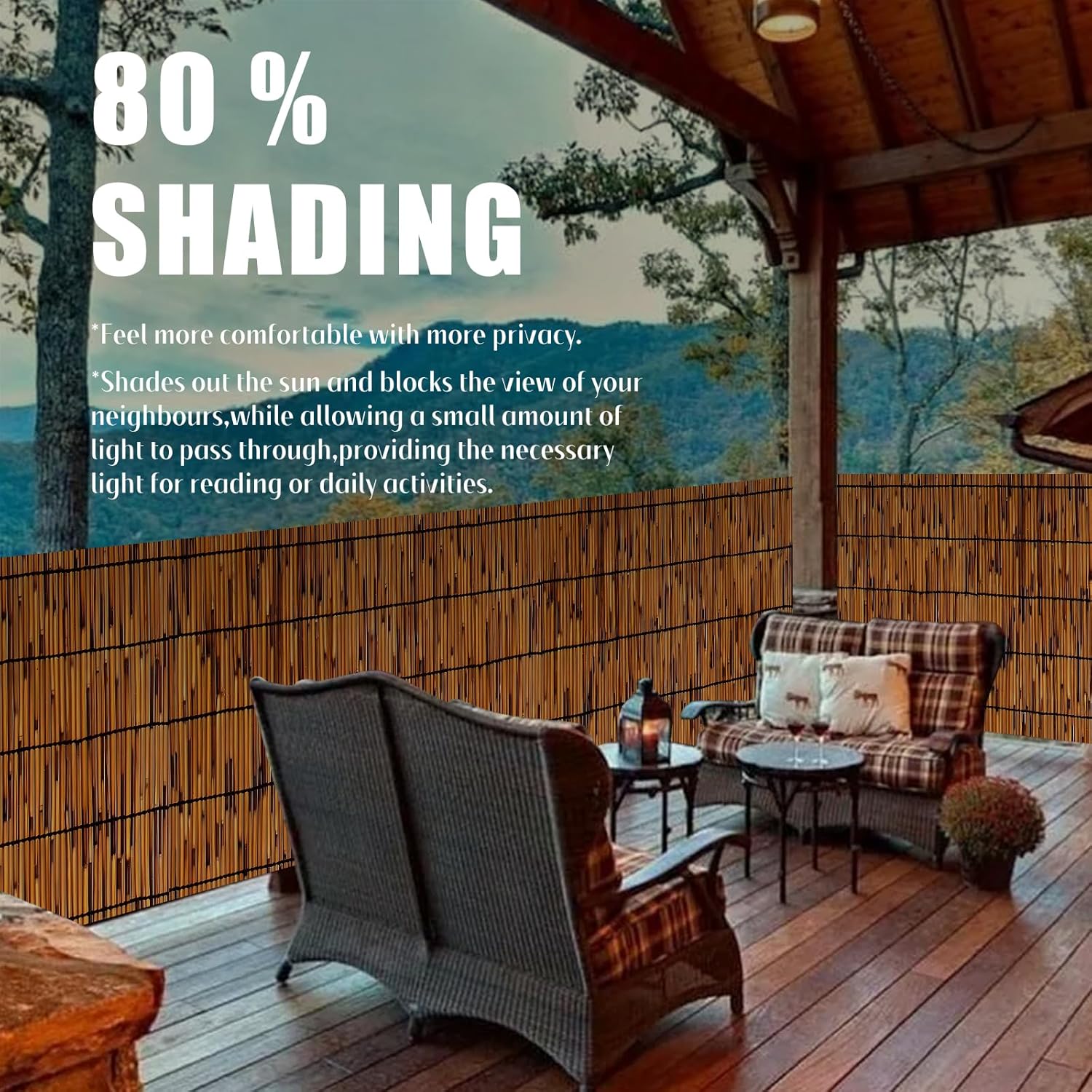 • 【80% Blackout And Privacy】The bamboo reed fencing blocks the sun and the view of neighbours. In addition, the 80% blackout reed fencing allows light to pass through, providing the necessary light for reading or everyday activities