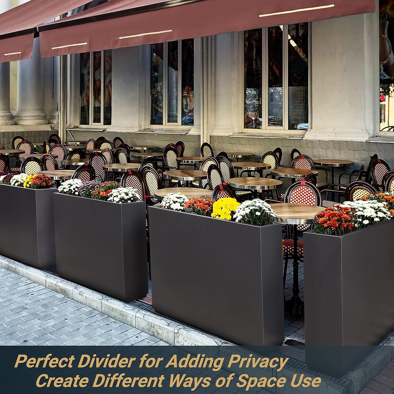 Metallic Heavy Planter for Outdoor Plants, 38Lx10Wx30H Inches Tall and Long Metal Divider Planter Box for Outside & Indoor, No Assembly Required (Gray)