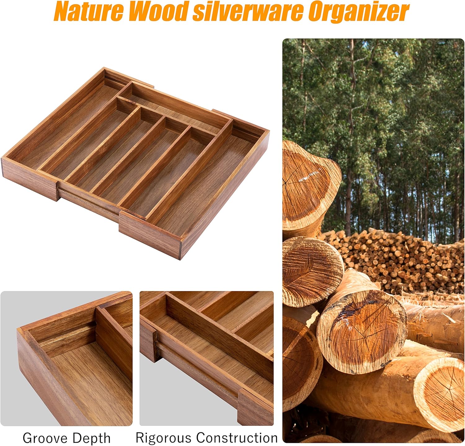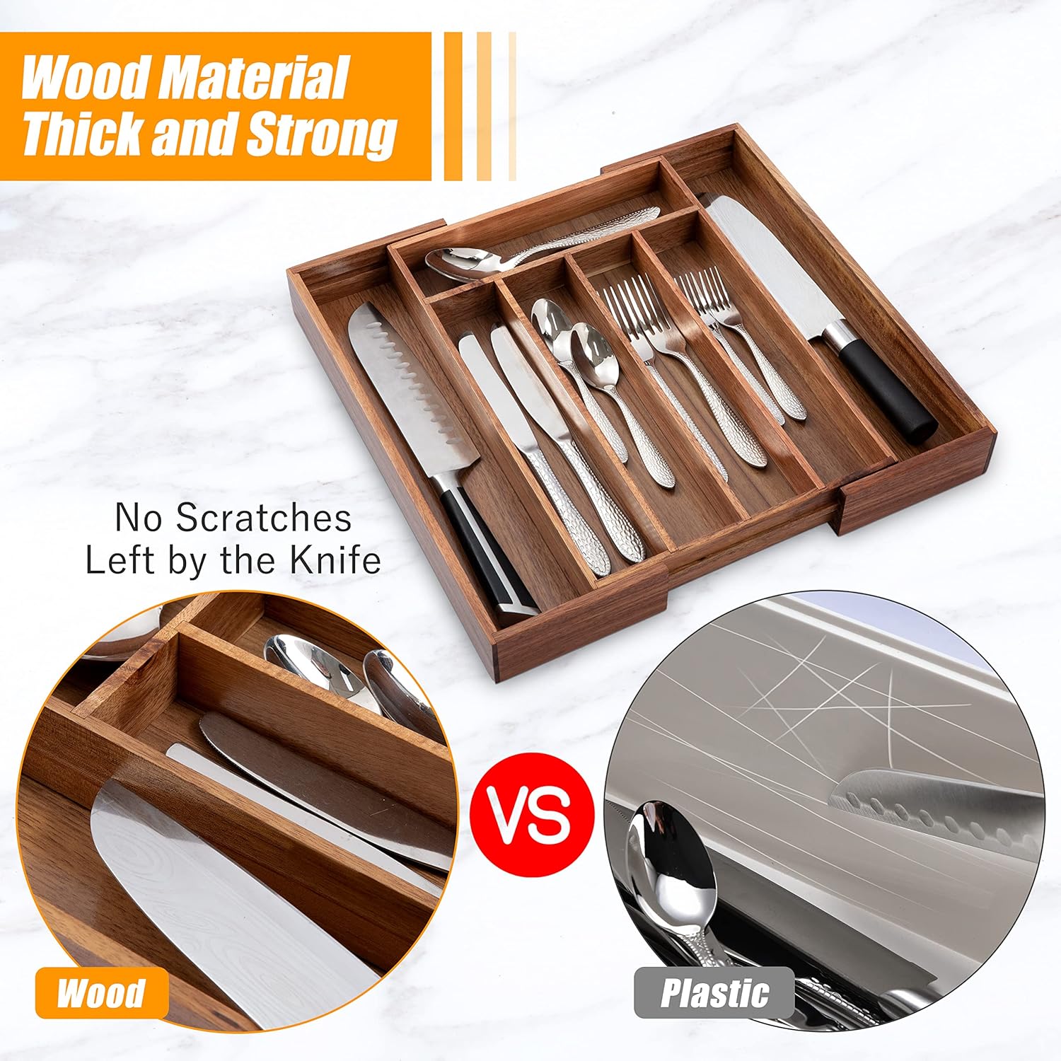 • ✅【Fit your drawer perfectly】Still measuring every kitchen drawer and buying a kitchen drawer organizer of the same size? Our bamboo silverware drawer organizer is designed with 5-7 compartments. Thanks to its adjustable features, our expandable drawer organizer can be expanded from 10 to 15 inch wide, Perfect for any kitchen drawers.