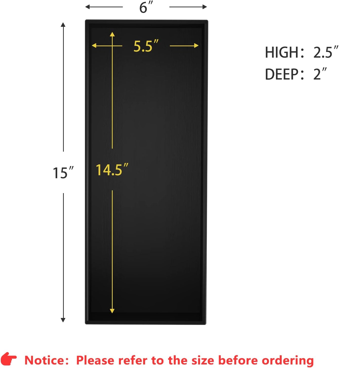 • Product Dimensions : 15"D x 6"W x 2.5"H