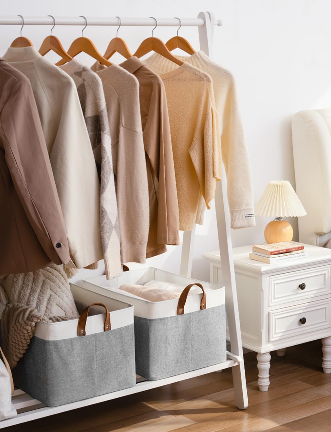 StorageWorks Storage Bins, Fabric Storage Bins for Shelves, Extra Large Storage Baskets with Metal Frame, Closet Baskets and Bins with Handles, Jumbo, Gray and White, 2-Pack