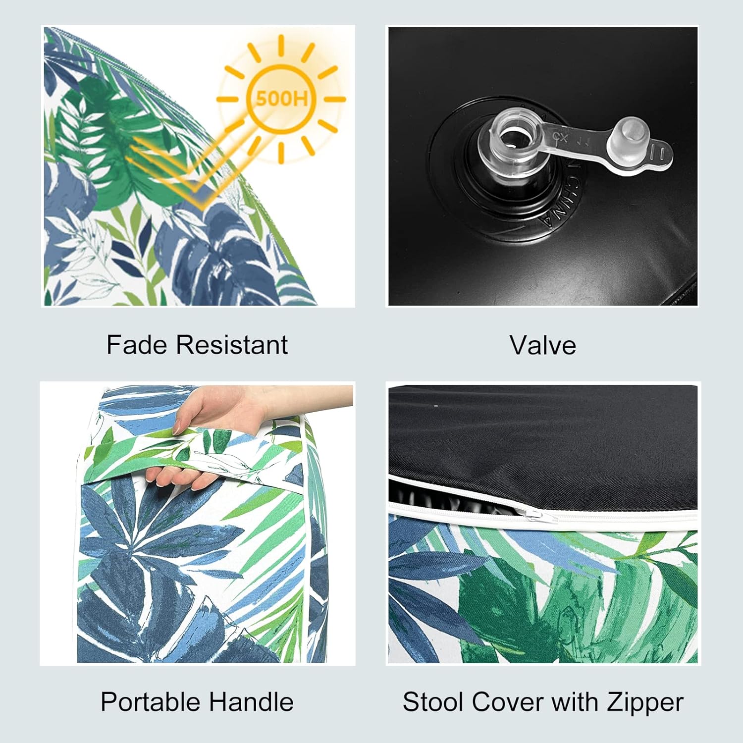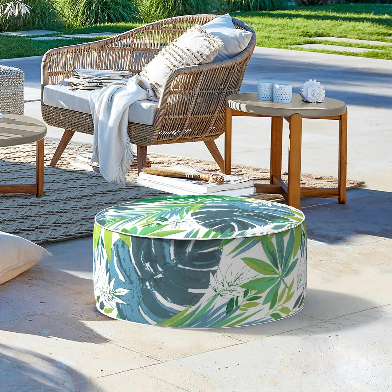LVTXIII Outdoor/Indoor Round Inflatable Ottoman, All Weather Patio Footstool, Portable Footrest Seat for Patio Garden, Camping or Home, 21"x21"x9", Islamorada Blue Green