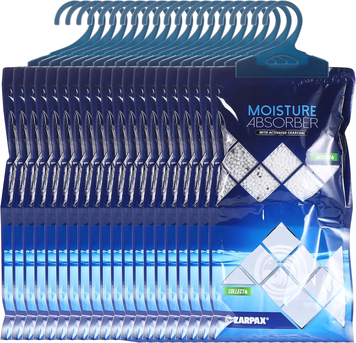 • POTENT MOISTURE ABSORPTION: Bid farewell to moisture and create a dry, comfortable indoor atmosphere with the ZARPAX hanging moisture absorber with activated charcoal. This easy-to-use packet provides an effective solution to protecting your home and valuables from excess moisture. Our humidity absorbers are the perfect solution for moisture-prone areas and ensure your closets, bathroom, and laundry rooms stay dry and odor-free.
