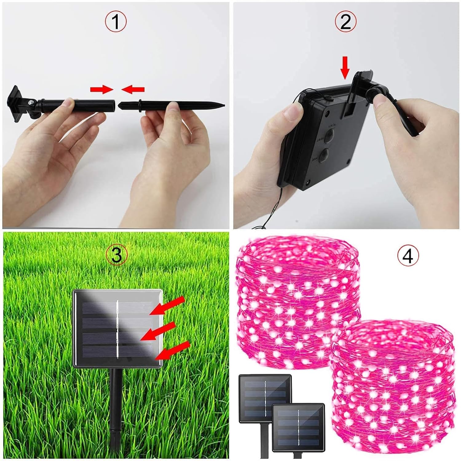 Solar String Lights Outdoor, 2-Pack Total 80FT 200 LED Solar Christmas Twinkle Lights Outside Waterproof Copper Wire 8 Modes Solar Fairy Lights for Garden Tree Party Birthday Christmas Decor (Pink)