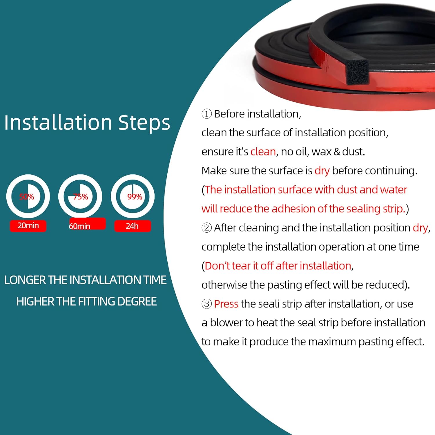 • 【RUBBER SEAL WITH HIGH TACK】The back comes with adhesive tape, which can be used immediately after tearing. What you need do, just to clean the place for installation, measure and cut the length, the adhesive is very sticky and long-lasting so you can rest assured.