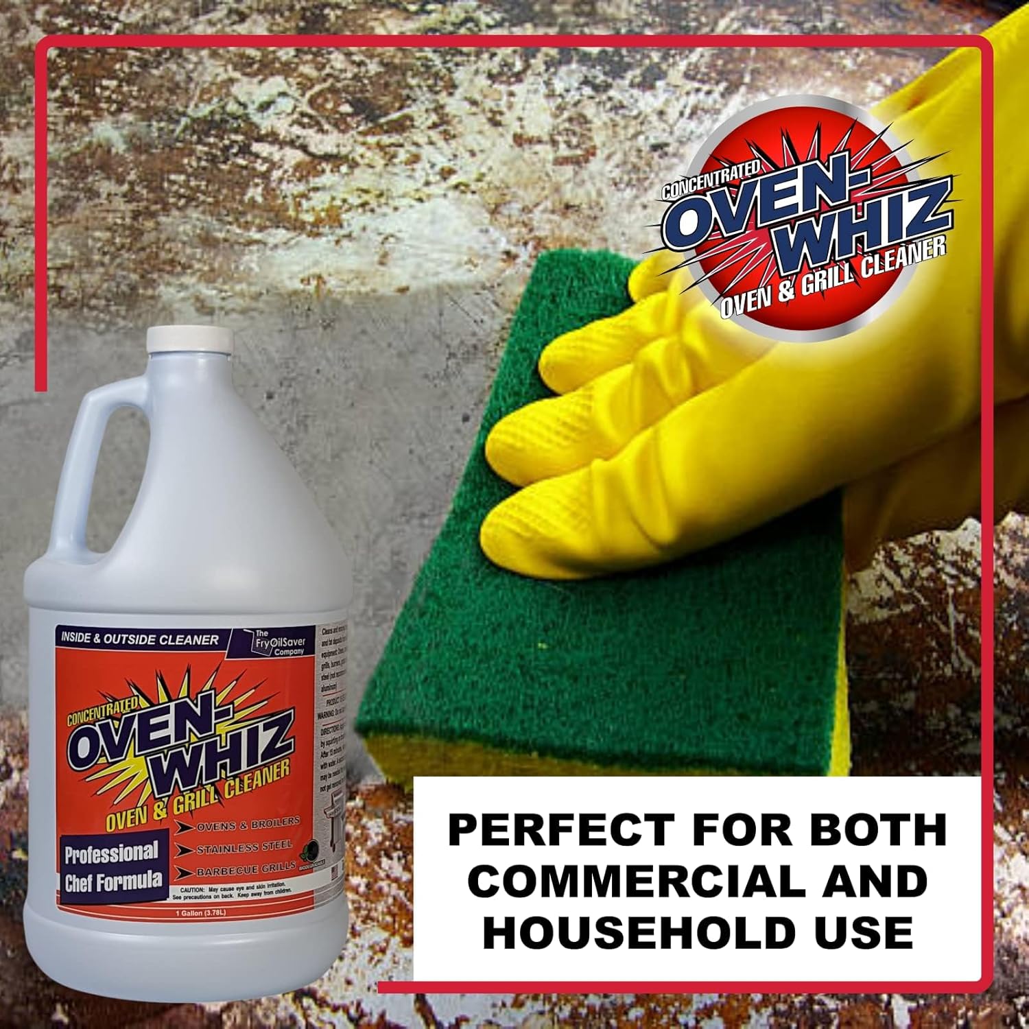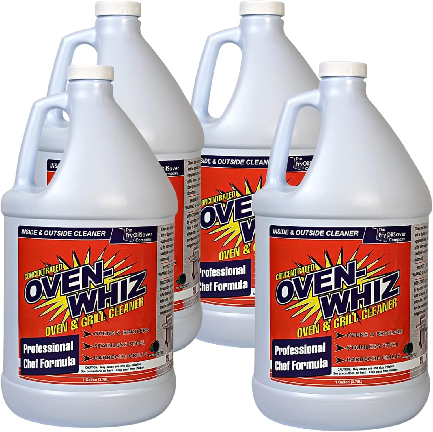 4 x 1 Gallon (512 Oz.) Oven-Whiz Oven & Grill Cleaner by FryOilSaver Co., Tough Stain Buildup, Grease & Food Burnt Eliminator for BBQ Grill, Ovens, Stainless Steel for Home Kitchen, Restaurant & Diner