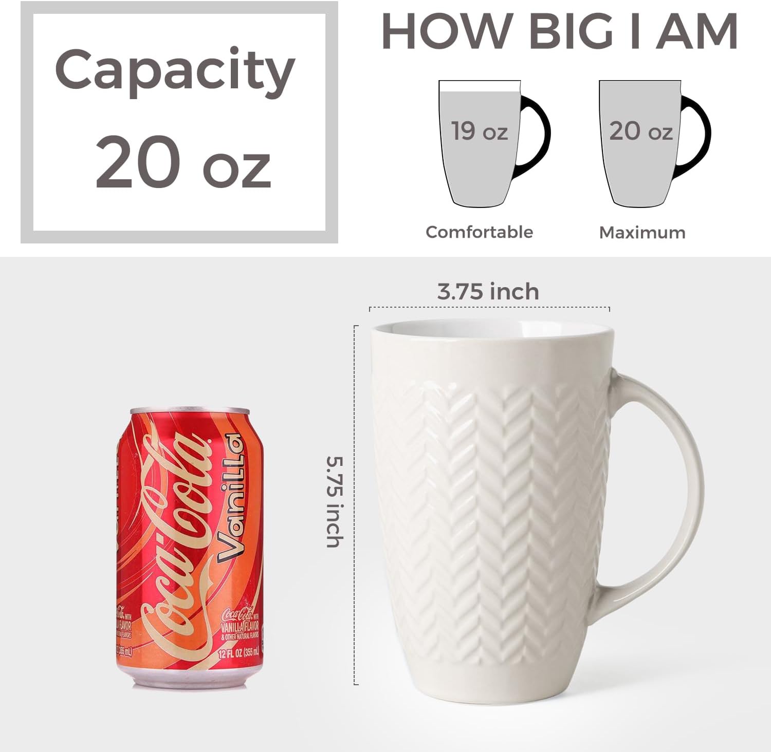 • 20OZ & VERSATILE : Big size for home and office daily use, even if you don't want to fill them, a normal cup of beverage is easier to handle without concern of spilling. Large capacity not only meet your coffee need, But also a great choice for tea, soup,beer, cocoa and more.