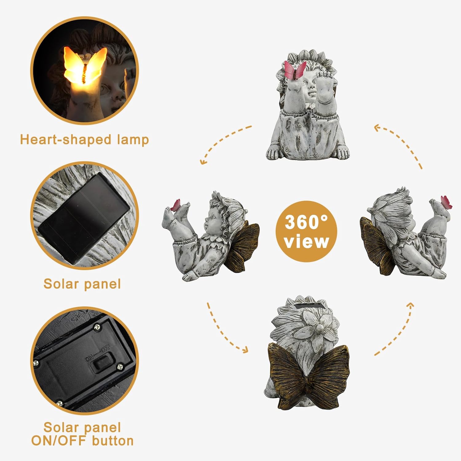 Garden Fairy Outdoor Solar Decor, Resin Ornaments for Patio Lawn Yard Porch, Playful Garden Flower Fairy Statues for Outside Angel Gifts, 7.91 Inches Tall