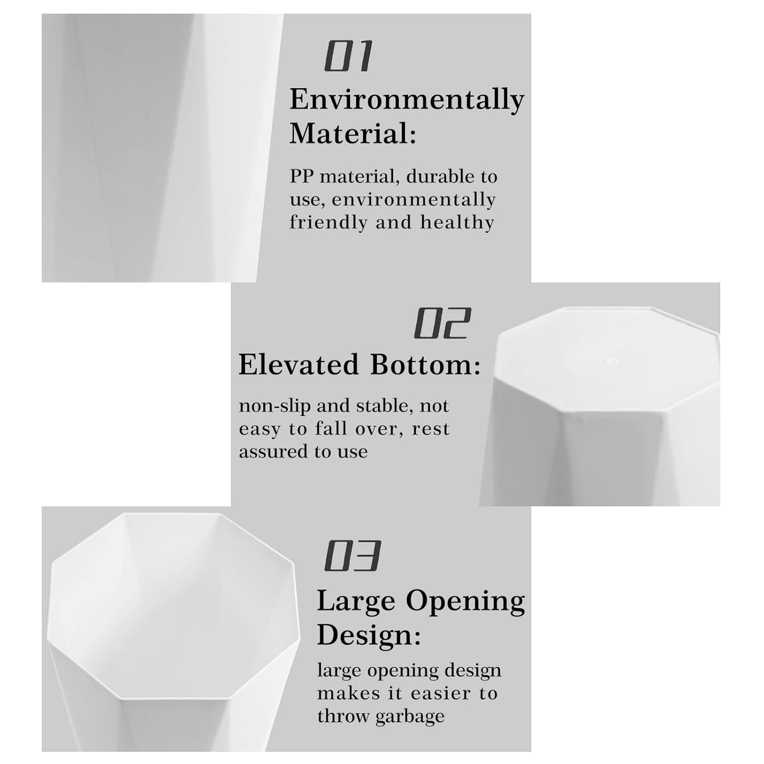 • This Diamond Shape trash cans are more beauty and charm to your room space, bring convenience for your daily life.