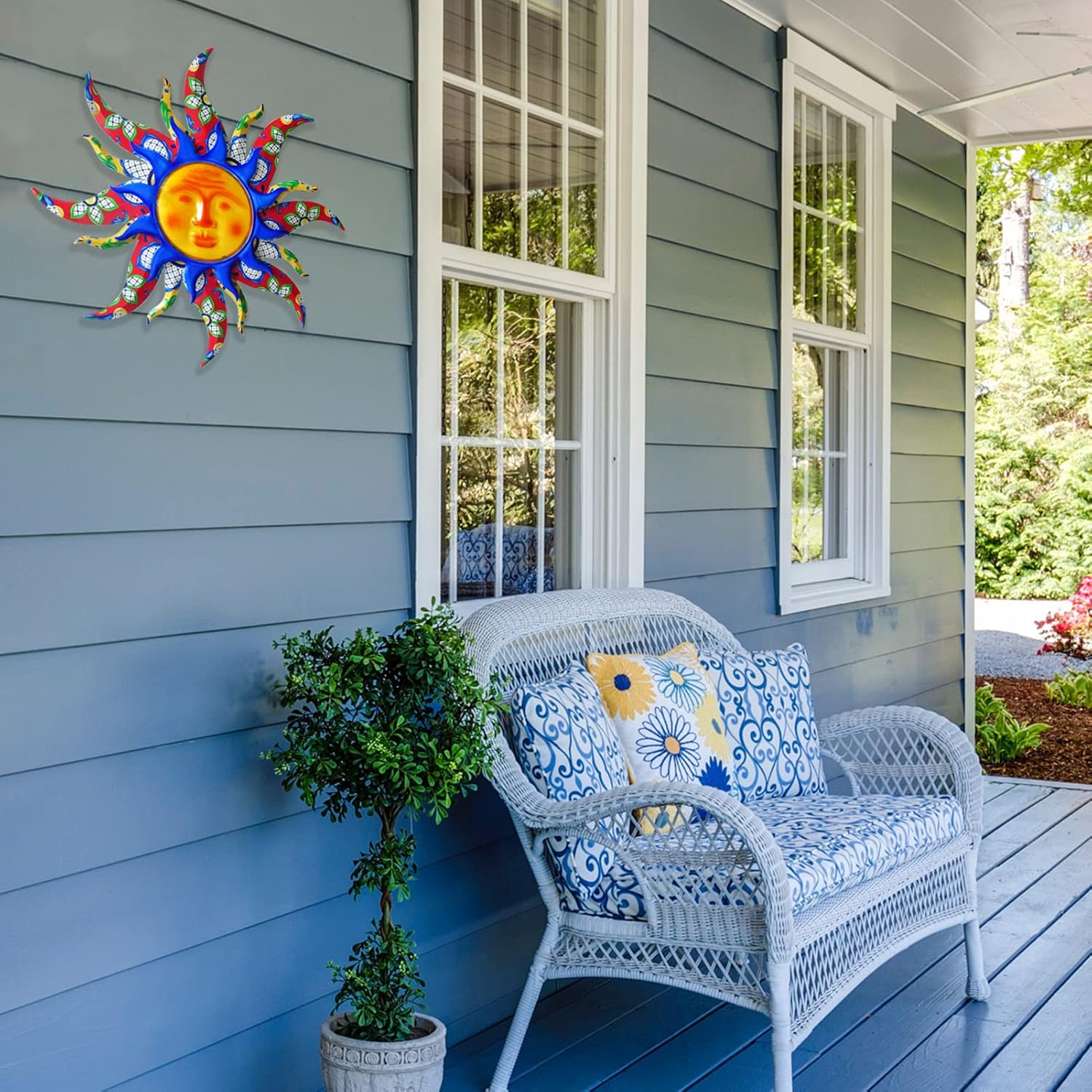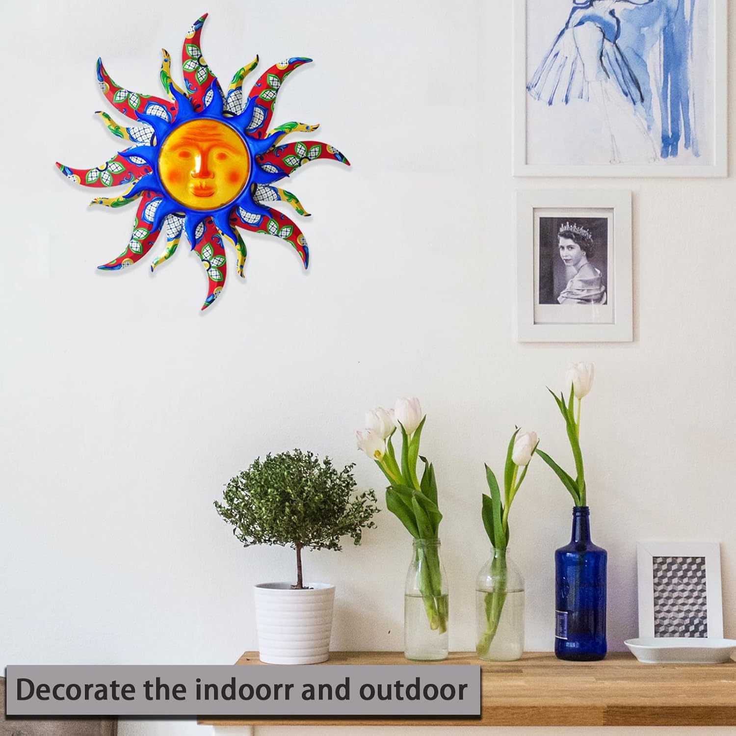 • 【 Metal Wall Art 】 : Mexican style Sun wall decor, using high-quality metal, hand painting spray paint, exquisite patterns and bright colors to bring vitality to your wall.