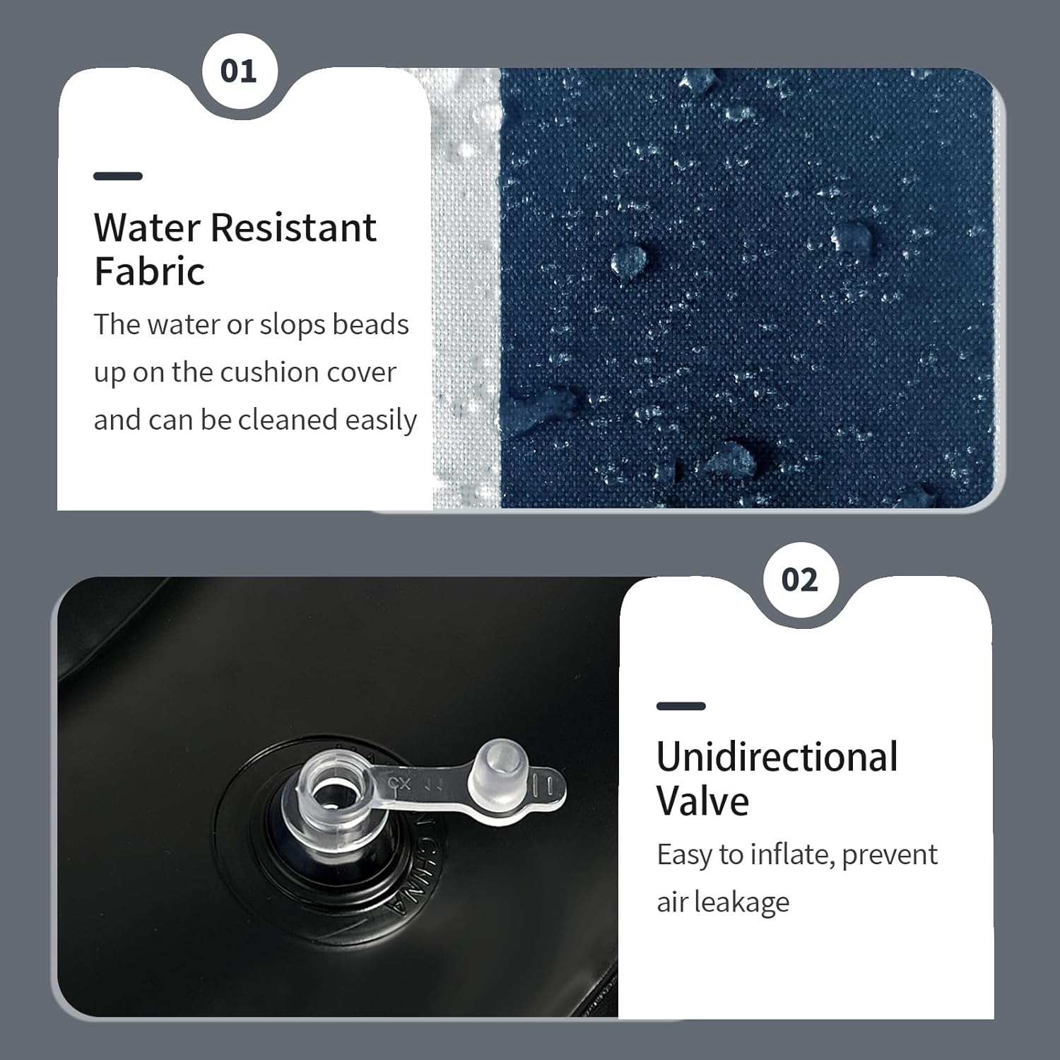 • 【EASY to INFLATE】 - Begin by placing the inflatable component into the cover prior to inflation. Utilize the foot pump to inflate it to approximately two-thirds of its size, then zip the cover halfway. Continue inflating until fully expanded and securely zip it closed. Ensure that the valve is properly sealed