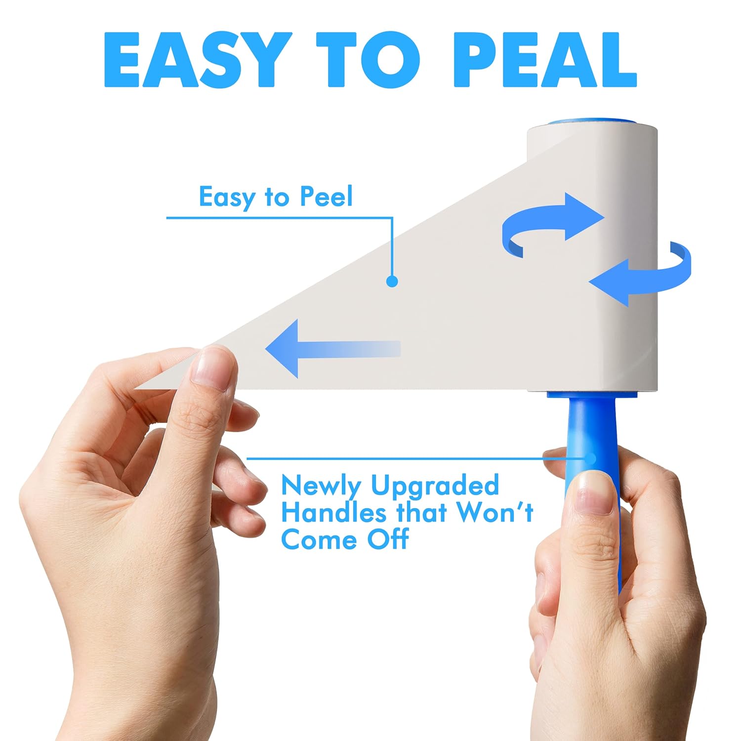 • Easy Tear Design: The lint roller for travel sticker with the diagonal peel design will not get stuck when rolling, you can smoothly peel off each sticker, easy to replace next new sheets.
