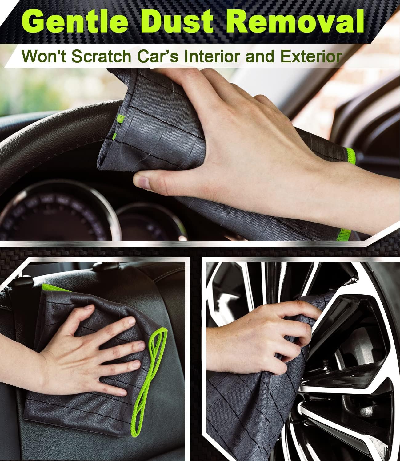 • Carbon Fiber Technology: Made with highly absorbent, and non-abrasive microfiber material, these cleaning cloths prevent scratches on surfaces, ensuring a gentle and safe cleaning experience, leaving your car's finish spotless and streak-free