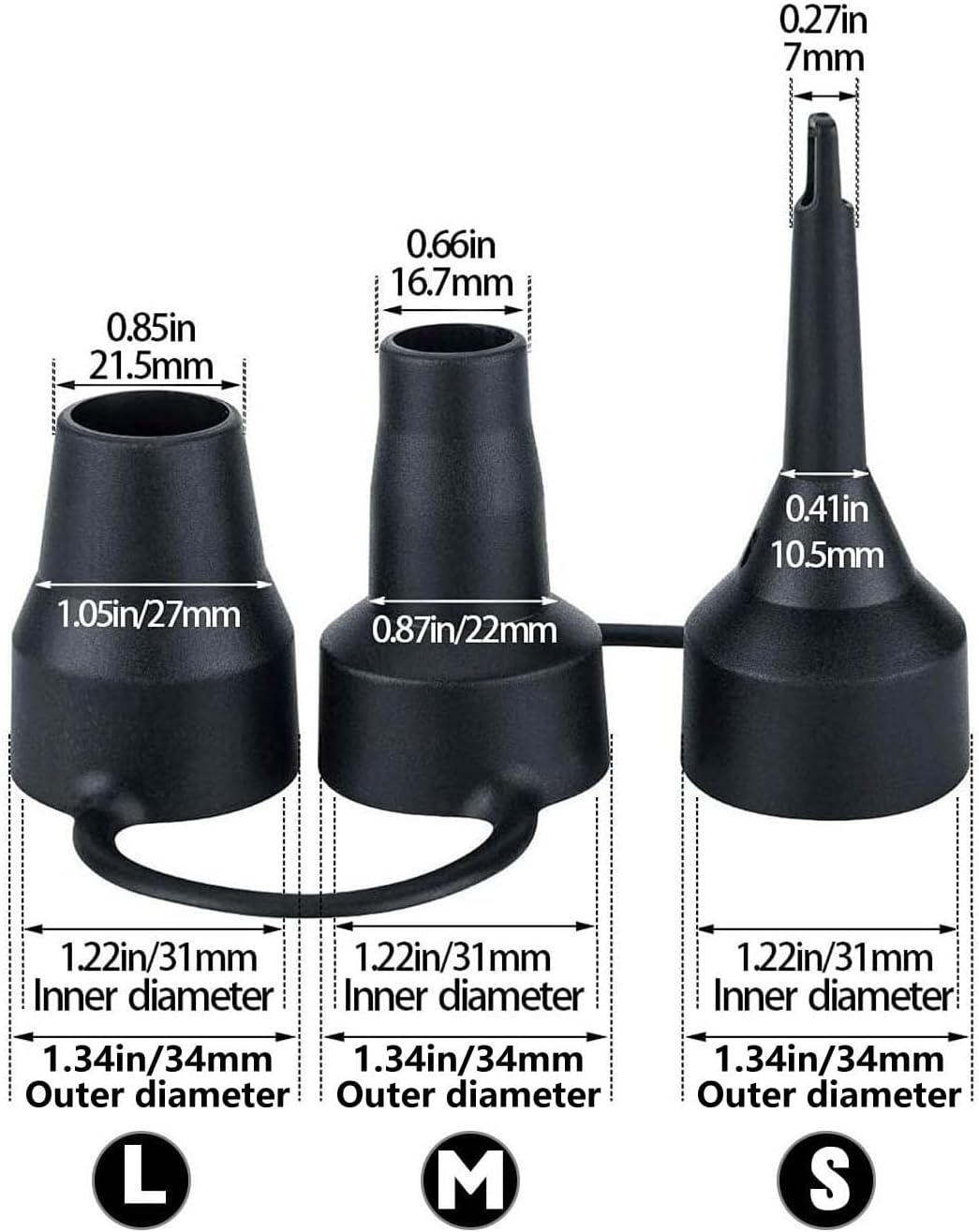 • Easy to Install: Choose the nozzle of proper size accordingly and install it on the air pump, and then inflate the target object, the small size one fit for small toys, medium and large one fits for swimming pool, boat, inflatable bed.
