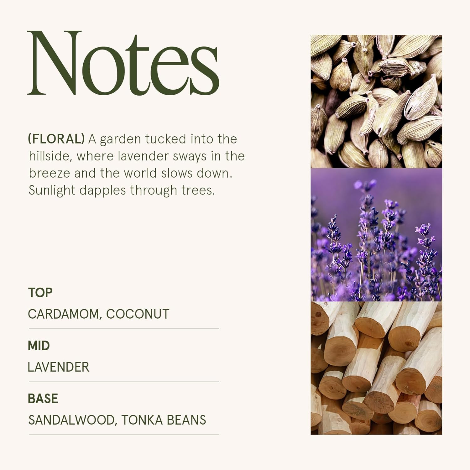 • JARDIN DE LAVENDER - Vibrant Lilac Scent paired with a Soothing Lavender Note, taking you on a ride to the late springtime hillside covered by flowers.
