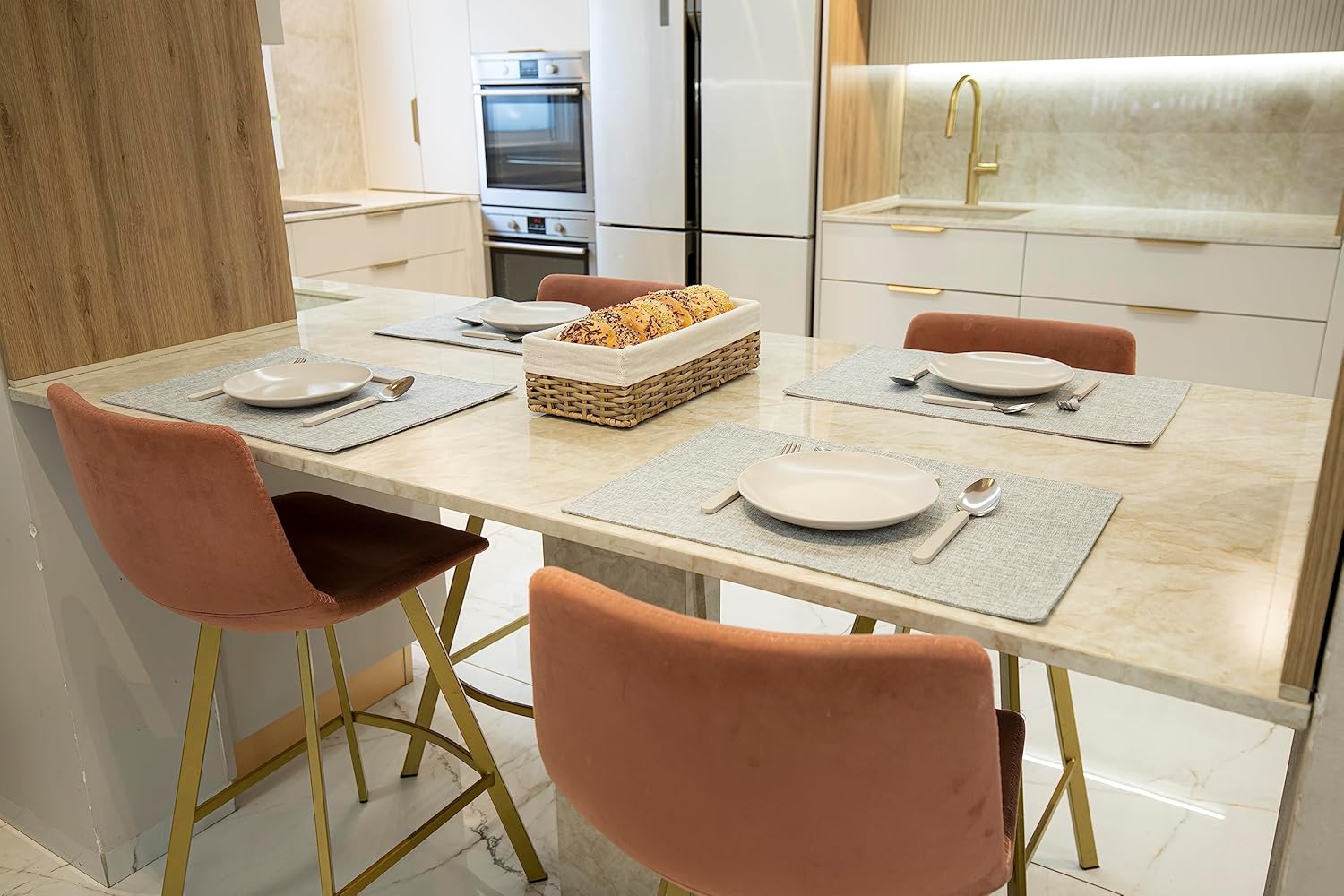 • Heat-Resistant: This amazing placemat set is detail-oriented and durable. Our placemat also aids in keeping the kitchen table clean for a long time. Buy this premium placemat set for the kitchen confidently and protect your indoor surfaces. Each placemat can be used in your kitchens, cafes, restaurants, and on any surface, making your table more beautiful. It also aids in keeping the kitchen coffee table or dining table clean for a long time.