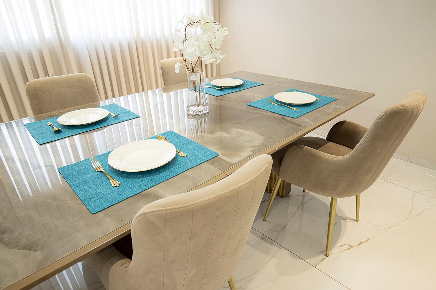 Placemat Set-Washable Place Mats for Parties, Elegant Table Mats for Kitchen Table, Set of 4 Dining Table Placemats, Heat-Resistant Cloth Placemats for Indoor and Outdoor,13x19-Teal