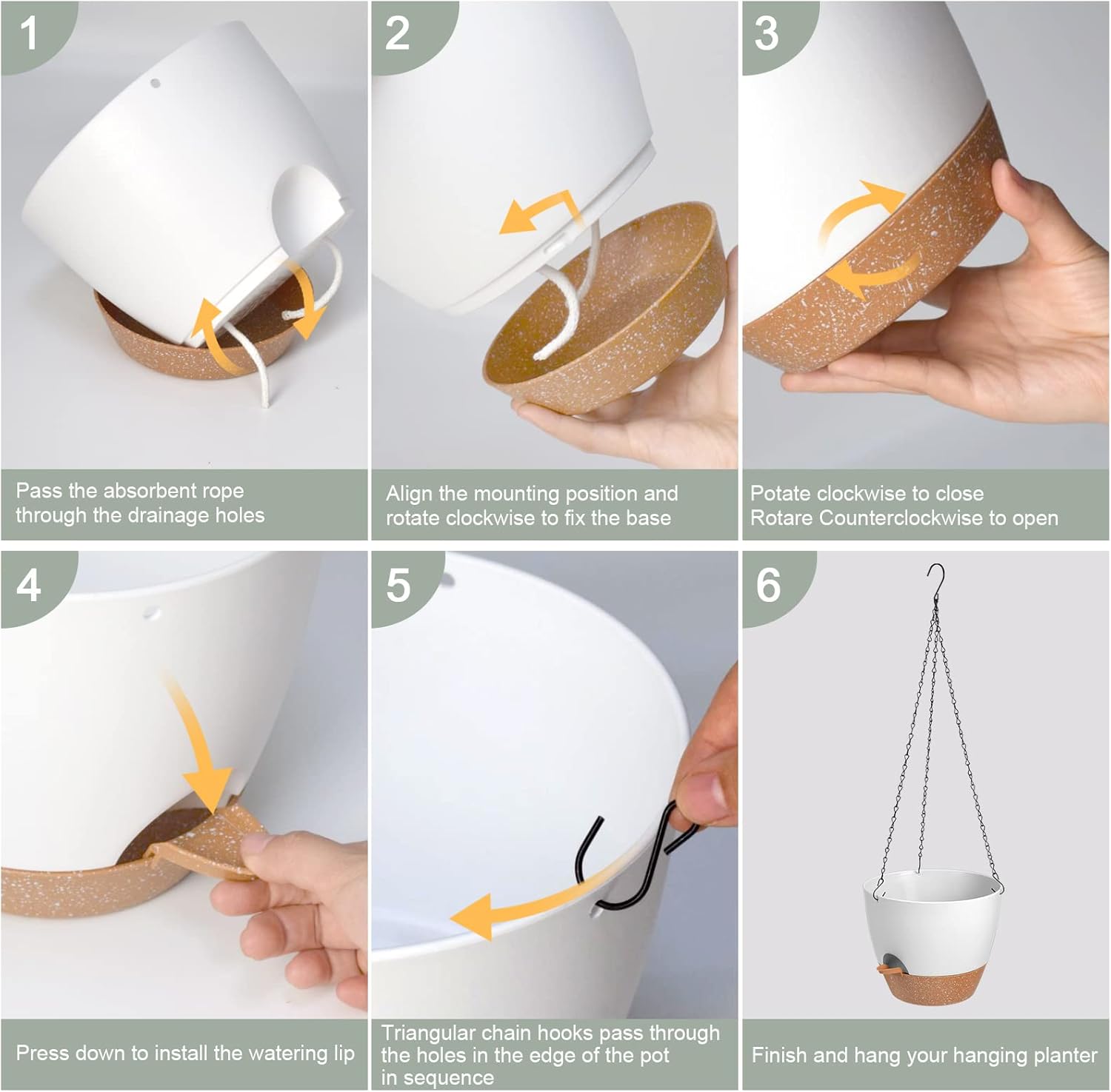 • Drainage Holes - The hanging planter multiple drainage holes can help you avoid over-watering and release excess water. Separate the potting soil from the water surface, enter the water through cotton rope perforations to keep the soil moist and the roots healthy. Self watering flower pots provides the best amount of water for your plants.