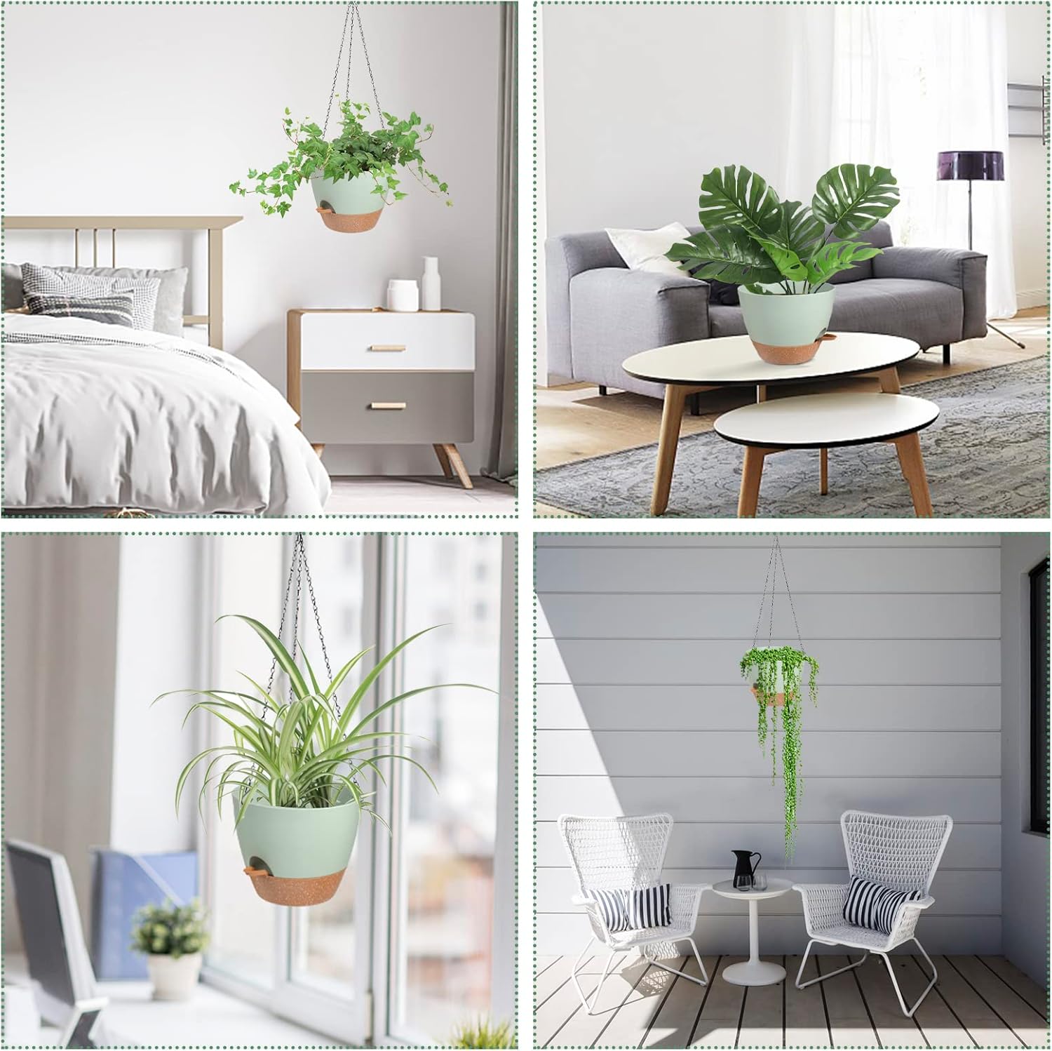 • Versatile Usage: The indoor/outdoor hanging planters are perfect for patios, gardens, balconies, and indoor spaces to bring a touch of greenery.