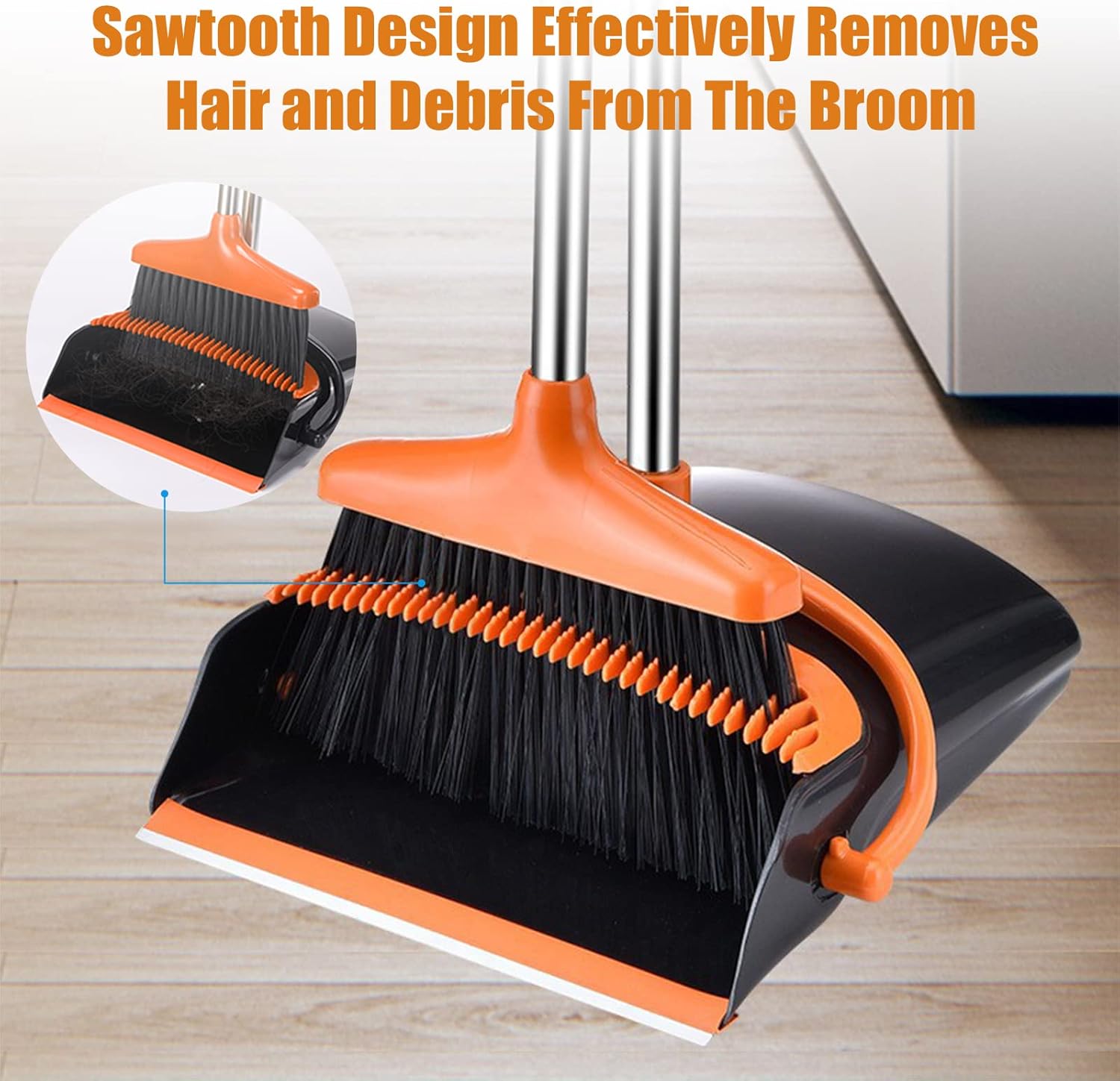 • ⭐【Self-Cleaning Teeth – Hands-Free Hair Removal】Built-in comb teeth on the dustpan edge quickly strip pet hair, long human hair, and dust from broom bristles—keeping your hands clean and making sweeping effortless.