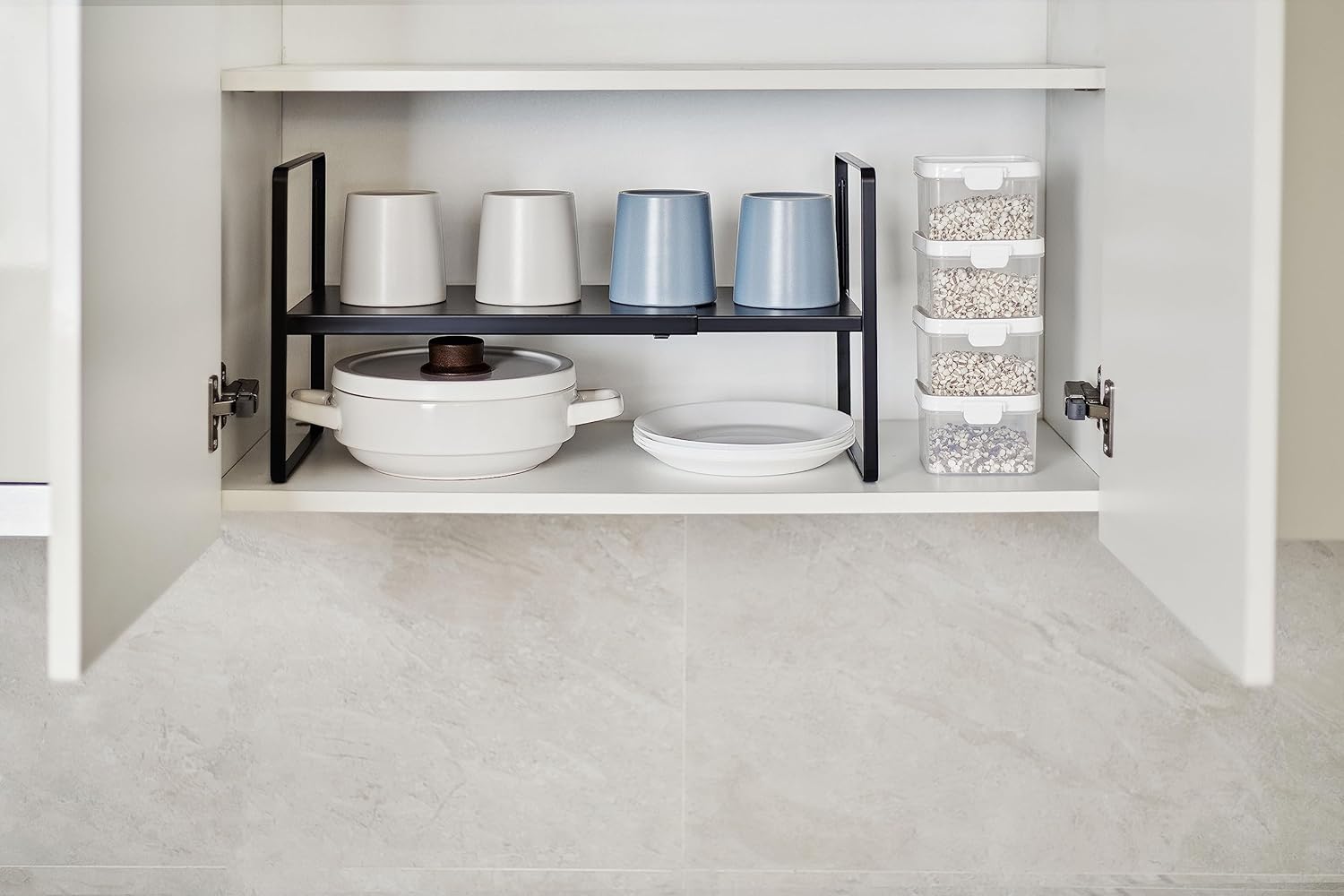 • MULTIFUNCTIONAL STORAGE: Using this cabinet shelf provides you with more storage space and allows for organizing various items such as bowls, cups, plates, dishes, snacks, books, magazines, spices and more. With this cabinet organizer, you can better organize your items and easily access the items you need.