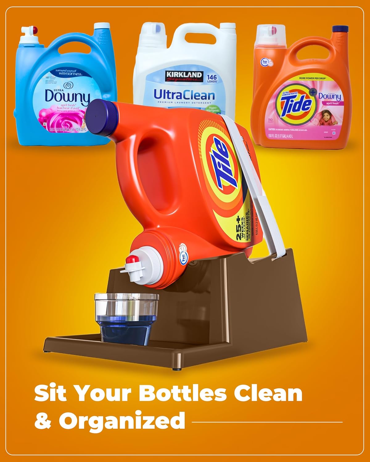 TidyFriend Laundry Detergent Holder Stand with Drip Tray, Laundry Soap Holder with Non-Slip Rubber Feet for Washing Space Organization, Angled Downward Slope for Easy Pouring (Brown)
