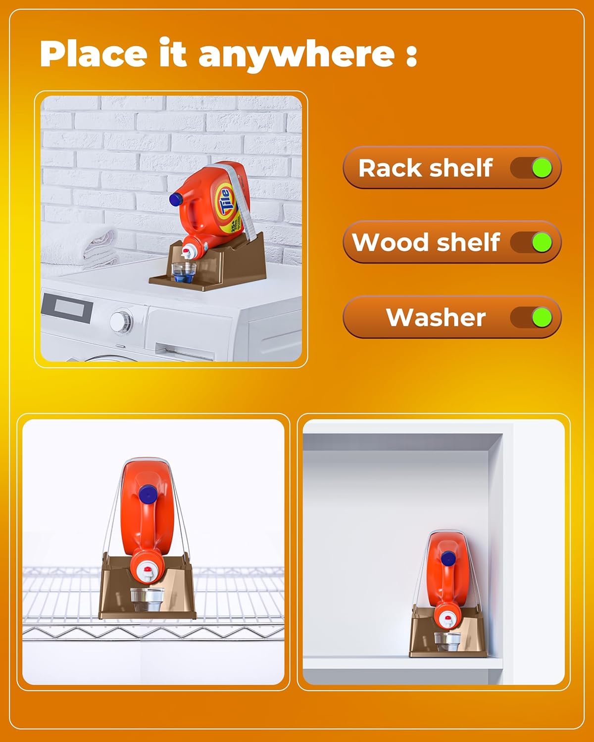• [Safe Attachment:] The laundry detergent shelf or holder features a secure strap that firmly attaches and ensures your detergent bottle stays in place and minimizing the risk of accidental falls and spills.