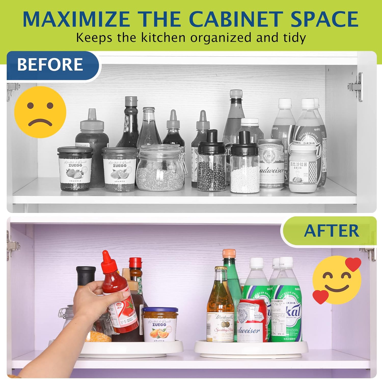 • 360° Rotation: Easy to rotate the lazy susan spice rack base, easy to pick up the items you want. Spinning lazy susan organizer maximizes cabinet closet and kitchen countertop space. keeps the kitchen organized and tidy.