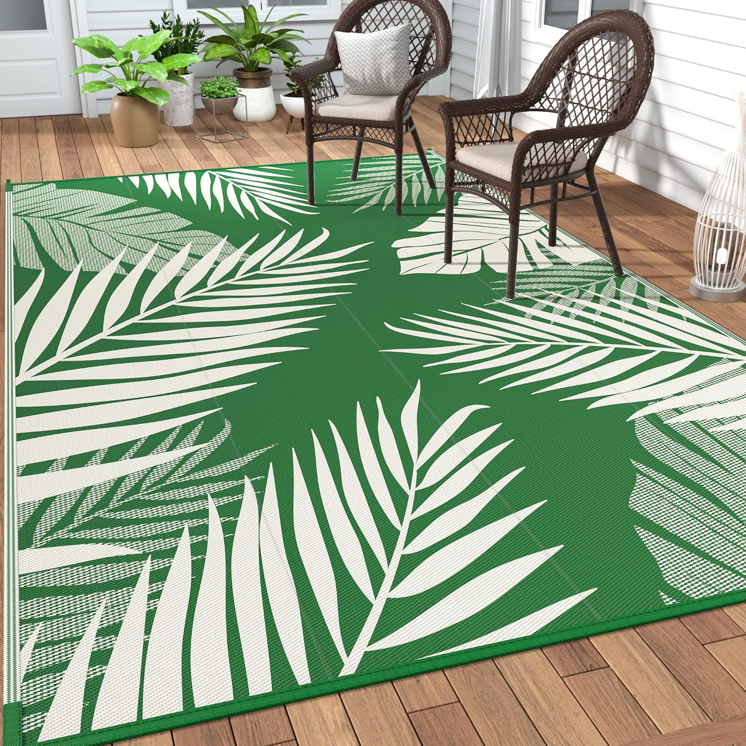 • Palm Leaf Design & Double-Sided Pattern: GENIMO reversible fall outdoor rug is designed with a double-sided pattern, completing the unique layout of multiple palm leaves. The 2 shades of green and white achieve the ultimate fusion. Either side can blend perfectly with nature and look very full and comfortable, making it a versatile piece for fall decor