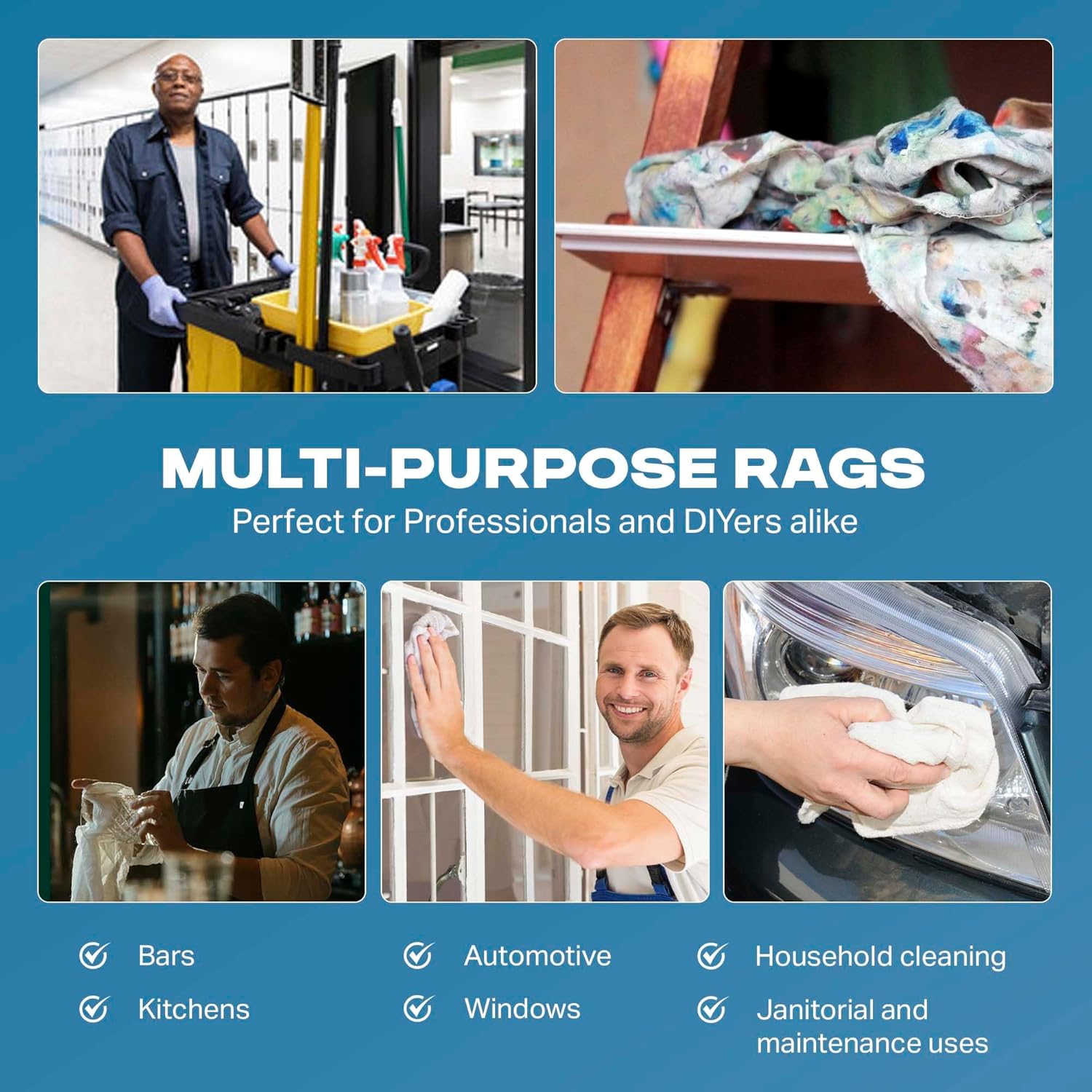 • Ideal for Pros & DIYers Alike: Trusted by mechanics, technicians, and cleaning professionals, these shop rags deliver consistent, lint-free performance. Use these shop towels for wiping tools, cleaning machinery, detailing vehicles, or general maintenance where high-quality cotton shop towels and rags are essential.