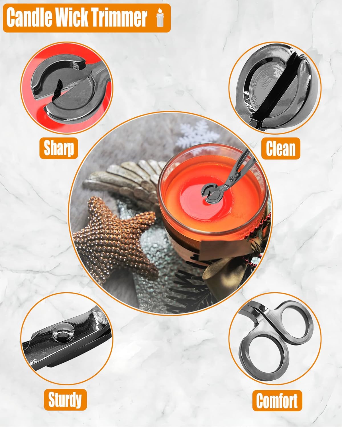 • ❤️【Candle wick trimmer】Makes candles burn longer, cleaner, and safer. The unique tray design catches the cut wick and prevents it from falling back into the candle.