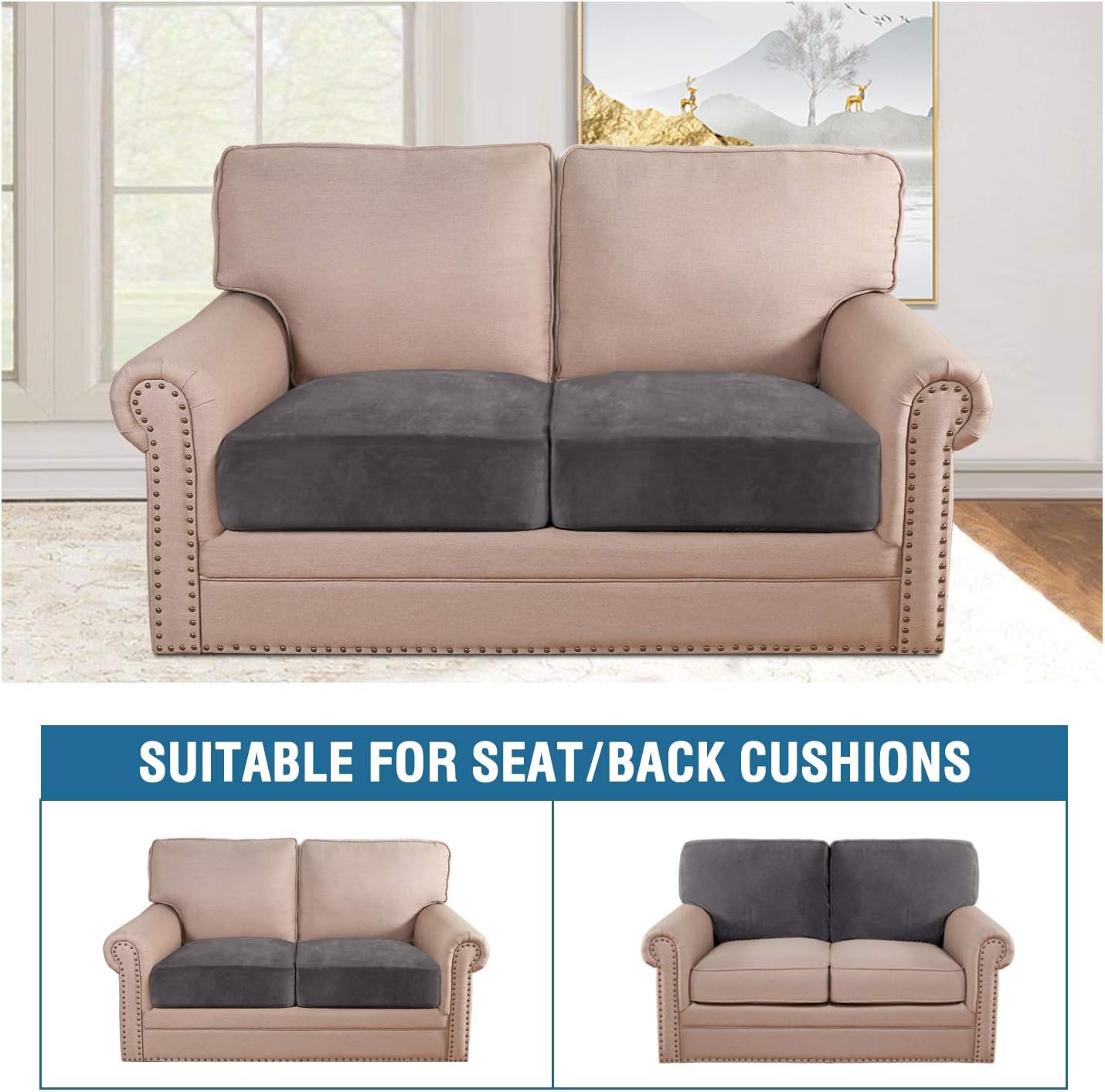 H.VERSAILTEX Velvet Stretch Couch Cushion Cover Plush Cushion Slipcover for Chair Loveseat Sofa Cushion Furniture Protector Seat Cushion Sofa Cover (2 Piece Large Sofa Cushion Covers, Grey)