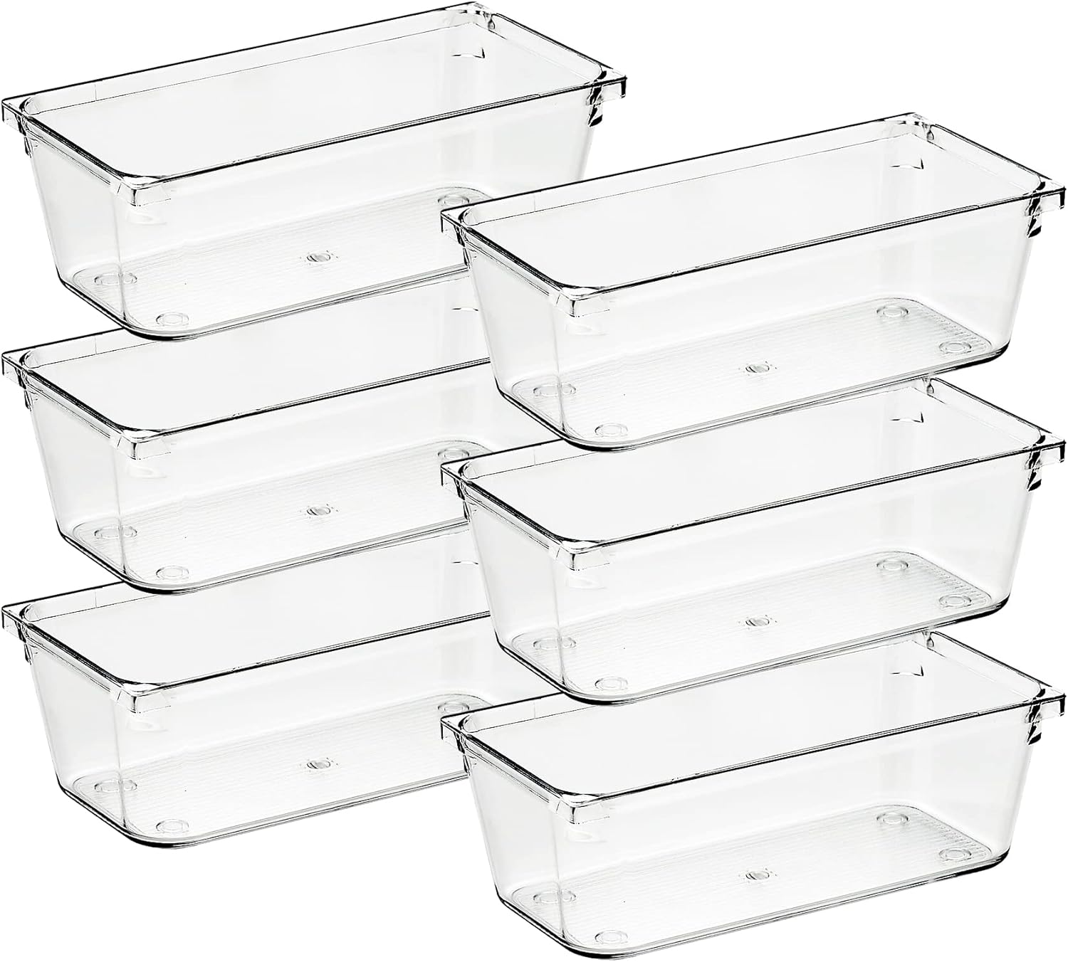 Ravinte 6 Pack Drawer Organizer - 3" X 6" Plastic Storage Bins, Acrylic Organizers with Non-Slip Pads Clear Desk Storage Tray for Makeup, Jewelries, Kitchen Utensils, Bathroom and Office