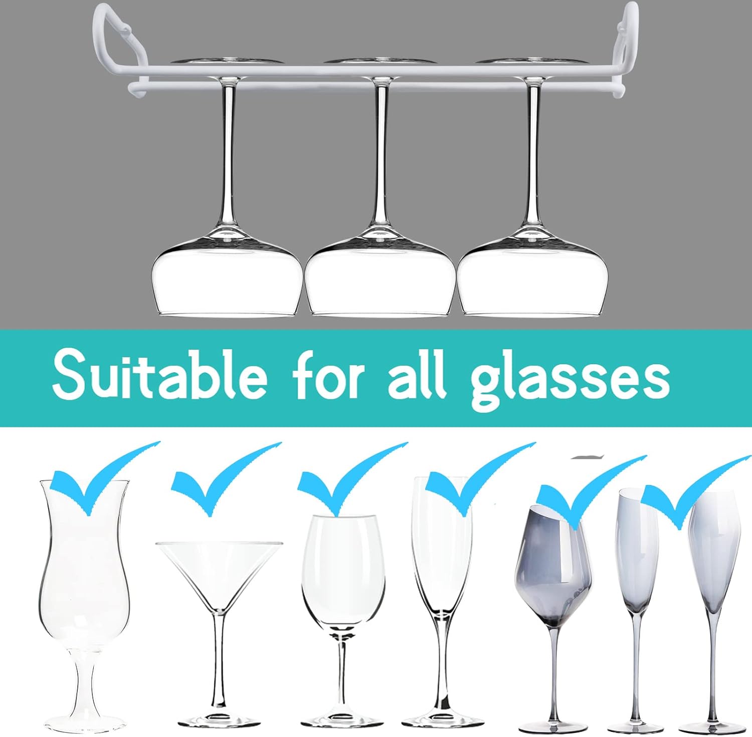 set 2 White Wine Glass Rack Under Cabinet Shelf 10 Inch Stemware Storage Hanging Hanger Organizer Glasses Holder with Drying Under Counter Metal for Kitchen and Bar