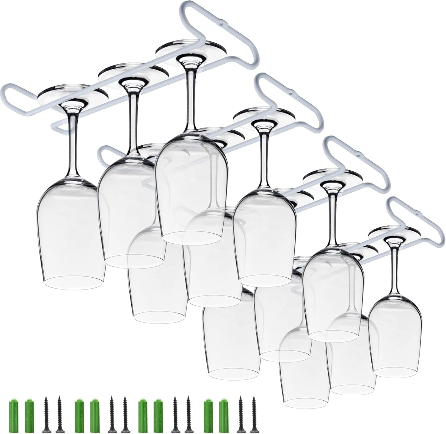 • Easy installation. under cabinet wine glass holder Equipped with screws and anchors. Our sets include screws. Fits under most cabinets.