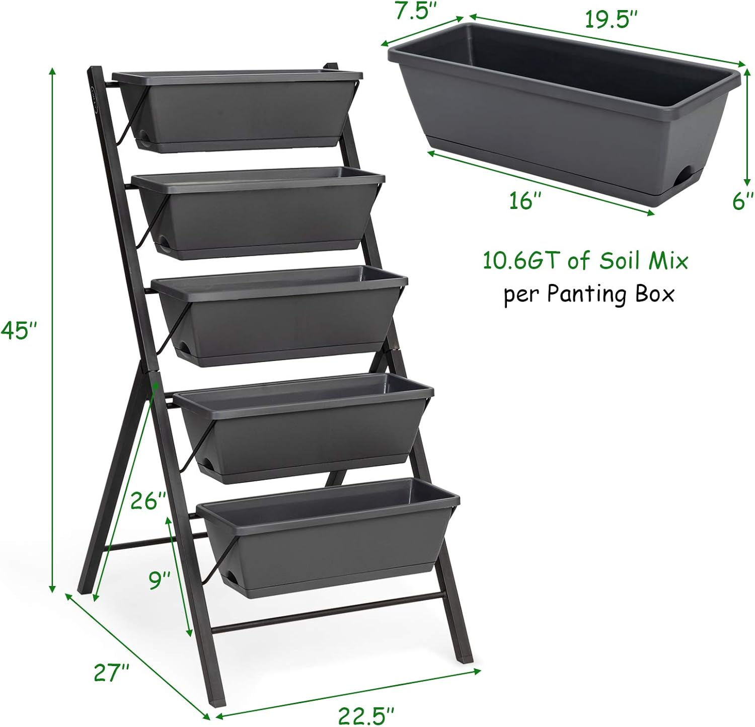 S AFSTAR 5-Tier Vertical Garden Planter, 5-Layer Raised Garden Bed with 5 Detachable Planter Boxes & Metal Frame, Indoor Outdoor Elevated Planting Containers for Flower Vegetables Fruit Herbs