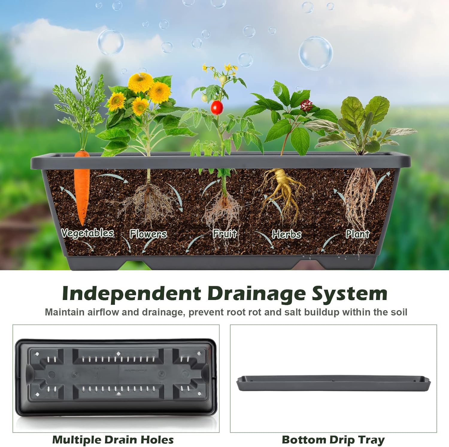• 🍀【Removable Bottom for Drainage】 Thanks to a scientific drainage system, each flower bin contains ample drainage holes. Just take off their bottoms, excess water will naturally outflow under the guidance of gravity.