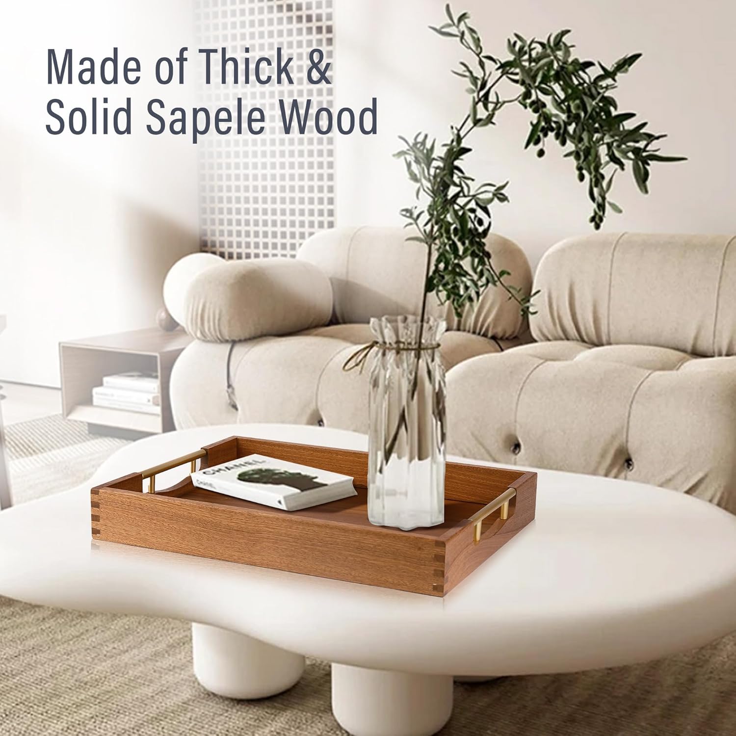 LotFancy Wood Serving Tray with Metal Handles, 17x13 Inch, Large Ottoman Tray, Decorative Wooden Tray for Living Room, Ottoman, Coffee Table, Countertop Centerpiece