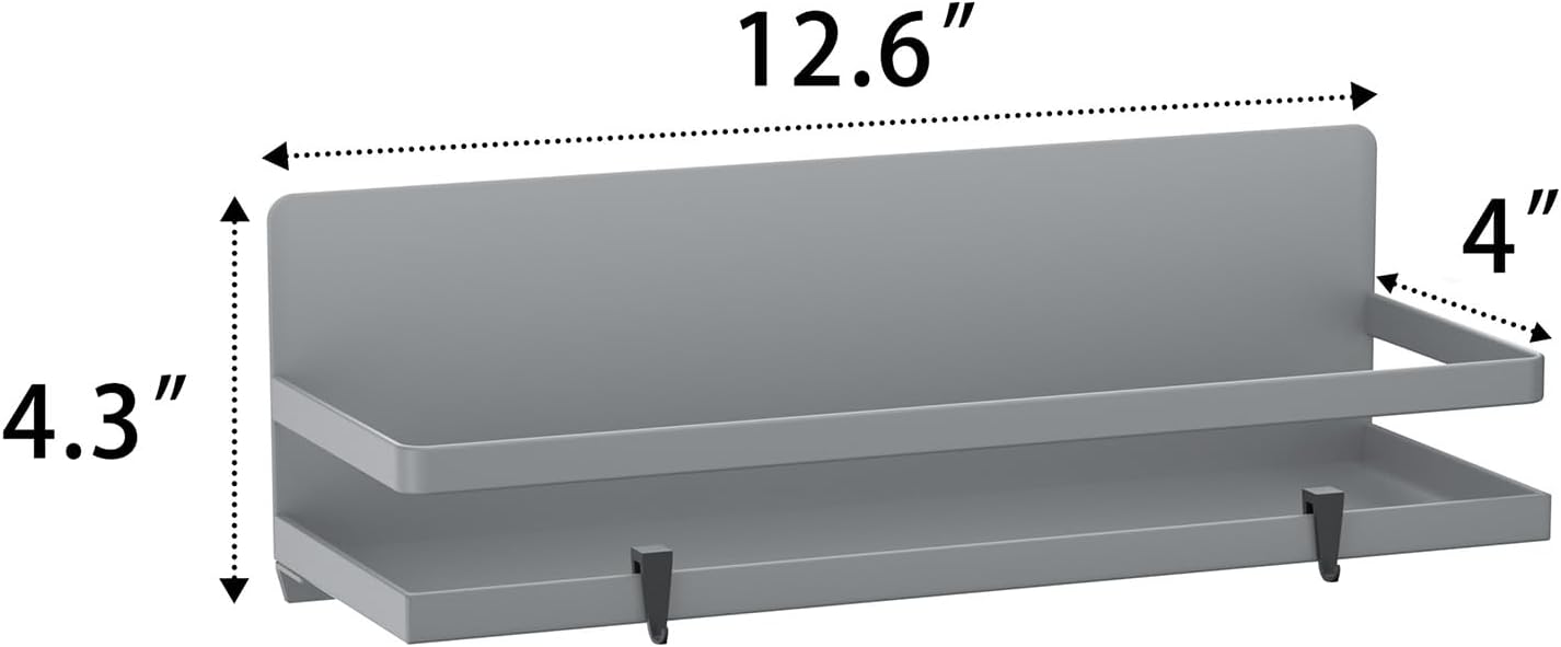 • 【QUALITY DESIGN】The magnetic shelves made of high quality thick steel plate for durability.Super strong magnet on the whole back, paint treatment, will not rust. Matte finish on the surface, safe and healthy. Smooth rounded edge design is safe and comfortable to touch.The shelf can carry up to 10 pounds.